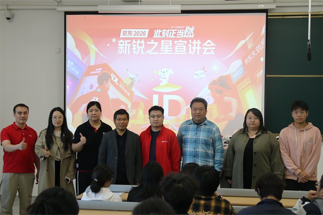为帮助应届毕业生搭建优质就业平台,10月22日下午,工商管理学院在启智楼1区205教室举办京东2026“新锐之星”校园招聘专场宣讲会。京东物流江苏省人力资源经理魏晖,江苏省区招聘经理、南京供应链HRBP负责人汪新威受邀主讲,优秀校友孟奎旭分享入职京东的成长经验。工商管理学院党总支书记、院长张太海,党总支副书记王海萍,团总支书记何玉凤,市场营销专业任课老师陶俊,物流管理专业辅导员方砚琳及近200名师生参加。
