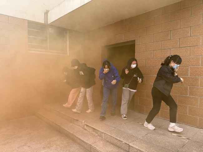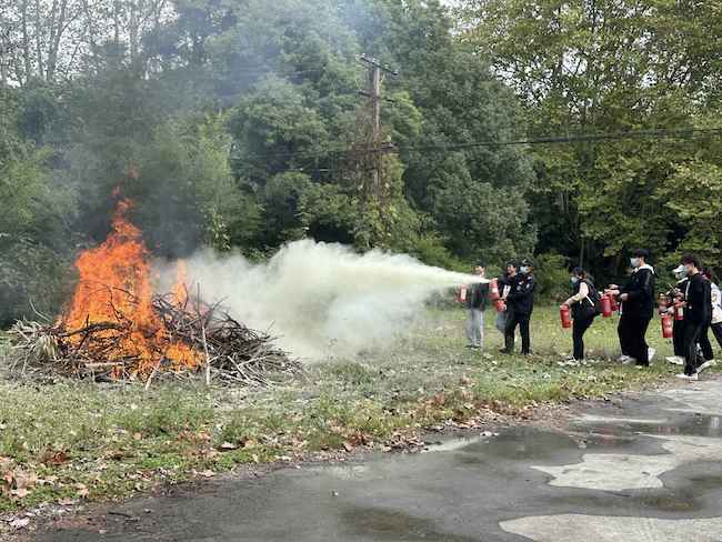 演练以学生宿舍火灾应急逃生、消防灭火器材使用为模拟场景。丛茂红副队长详细讲解了相关灭火常识、火灾预防基本知识、火情报警常识、初期火灾处置及逃生、灭火设备的使用方法等,并提供了现场指导。参演学生在专业消防队员的指导下,分组进行了灭火演练。在逃生演练阶段,参演学生按照疏散规范要求,从各宿舍区安全有序撤离至指定区域,演练各环节衔接到位、实操规范,取得了良好的实战效果。