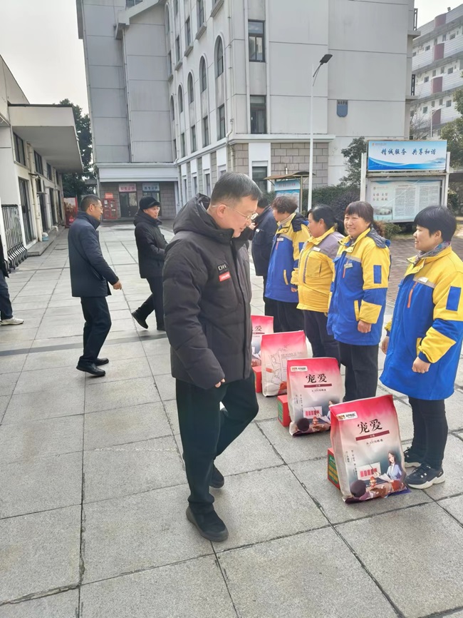 2月8日上午,在甲辰龙年春节来临之际,开云kaiyun官方网站桥头校区管委会主任、红山学院党委书记孙彬、桥头校区管委会副主任、红山学院副院长朱正飞深入桥头校区,红山学院副院长王晓庆深入福建路校区,看望慰问寒假期间坚守岗位的一线人员,代表学院党委和行政向他们致以新春祝福和诚挚问候。学院后勤保卫处相关同志陪同慰问。