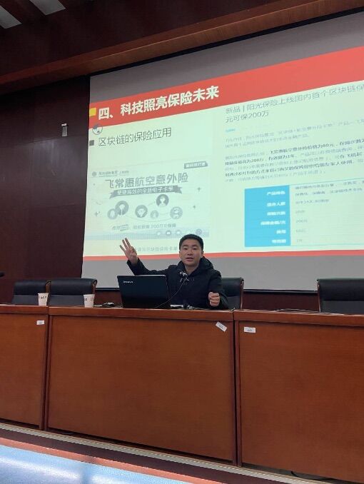 姚定俊副院长的讲座向大家描摹了一幅保险业助力经济发展、保障人民安居乐业、护航大国崛起的生动画卷。讲座深入浅出,生动幽默,与会师生表示受益匪浅。