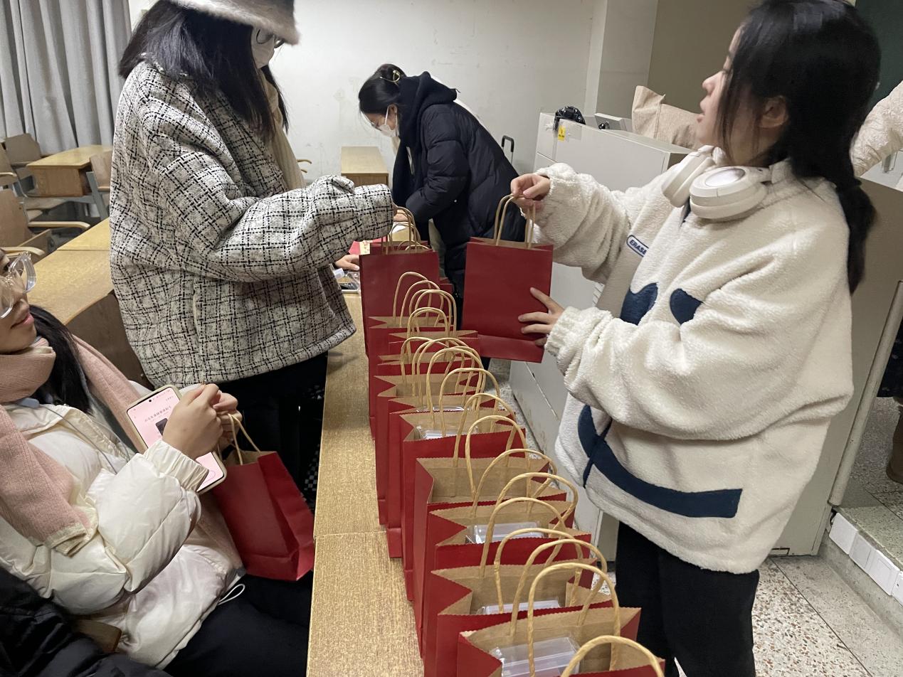 大四辅导员陆学琼向备考学生一一送上了充满温暖的福袋礼包,鼓励考生一定要增强信心,持之以恒。提醒考生要合理规划,有序备考,制定并实施科学的复习计划,提高学习效率。还嘱咐考生,在备考的同时也要注意加强身体锻炼,劳逸结合,以健康的体魄和积极的心态去冲刺。