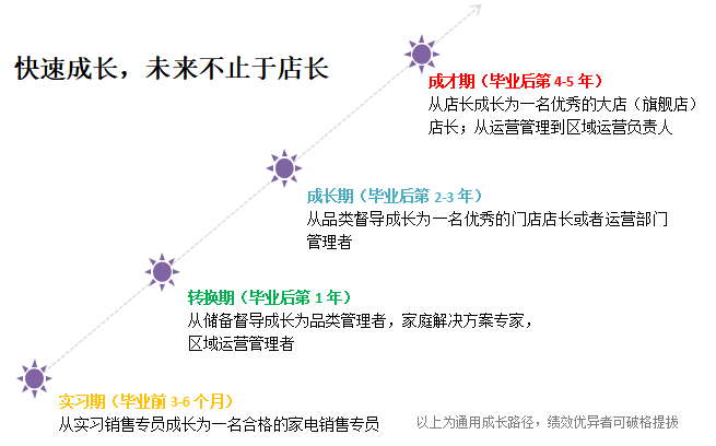 门店储备干部 | 1、通过终端实践学习,从协助到最终全面负责门店经营管理工作; | 1、25届本科学历应届毕业生; |