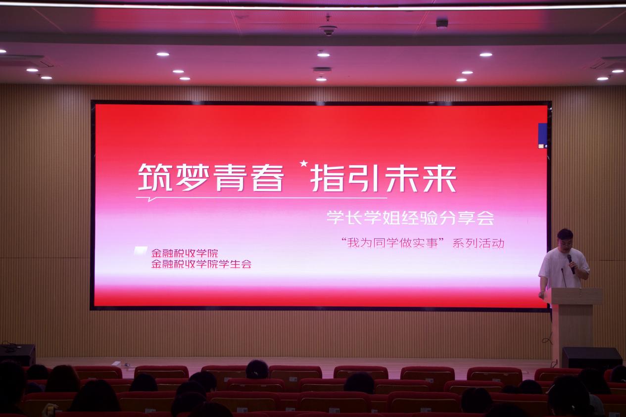 4月23日,金融税收学院学生会于高淳校区第三报告厅举办“筑梦青春·指引未来”经验分享会,围绕考研、留学、基层就业等热点话题,邀请2025届学生李惠、卢睿及2024届毕业生胡磊、刘弘毅担任主讲,为200余名大二、大三学生提供职业发展指导。
