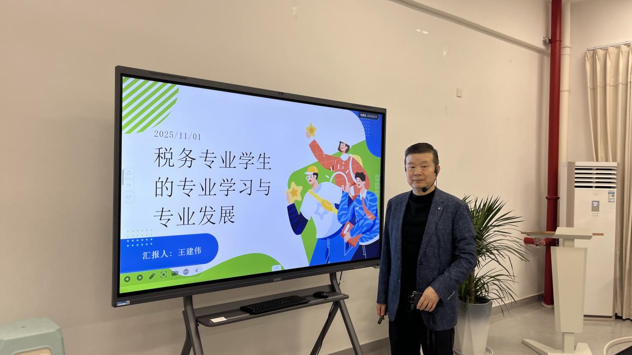 王建伟副教授以“税收法规、会计实务与法律素养融合”为核心,阐释了跨学科能力对职业竞争力的关键作用。他指出,会计是专业基础,税务实现合规价值,法律提供风险防控,三者融合是职业高质量发展的核心路径。