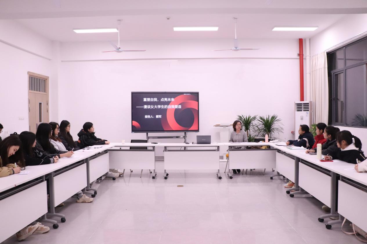为助力女大学生全面提升综合素质、科学规划成长路径,2025年12月11日晚,金融税收学院在智圆楼B429举办“重塑自我,点亮未来——漫谈女大学生的自我塑造”主题讲座。本次讲座由学院党总支书记张金龙主持,特邀蔡军教授主讲,学院女生代表齐聚现场,共赴成长交流之约。