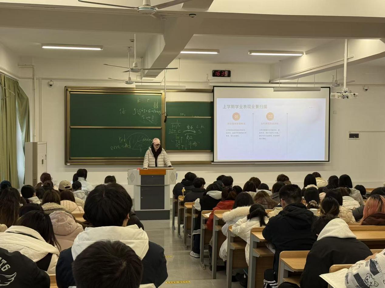 在抓好反诈教育的同时,班会统筹部署学期重点工作:一是学业复盘,针对上学期挂科学生建立帮扶台账,明确补考安排;二是安全教育,围绕防火、防水、防电、防交通事故、防食品安全开展"五防"提醒;三是纪律强化,重申课堂考勤规范,引导学生快速进入学习状态。