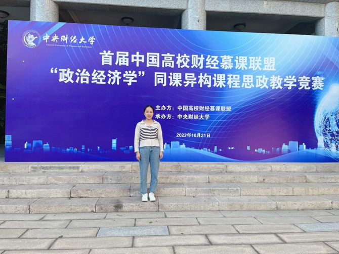 2023年10月21日,由中国高校财经慕课联盟主办的首届中国高校财经慕课联盟“政治经济学”同课异构课程思政教学竞赛在中央财经大学举行。来自全国财经类院校31位教师经所在学校推荐参加本次竞赛,经过复赛和专家评审,开云官网国际经贸系教师蒋敏荣获了三等奖的好成绩。