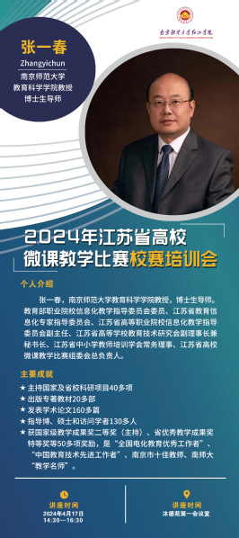 为保障《2024年江苏省高校微课教学比赛》校赛选拔工作顺利进行,为开云官网教师提供充分的指导支持,特邀南京师范大学教育科学学院张一春教授开展专题讲座,诚邀各系(部)教师积极参加。