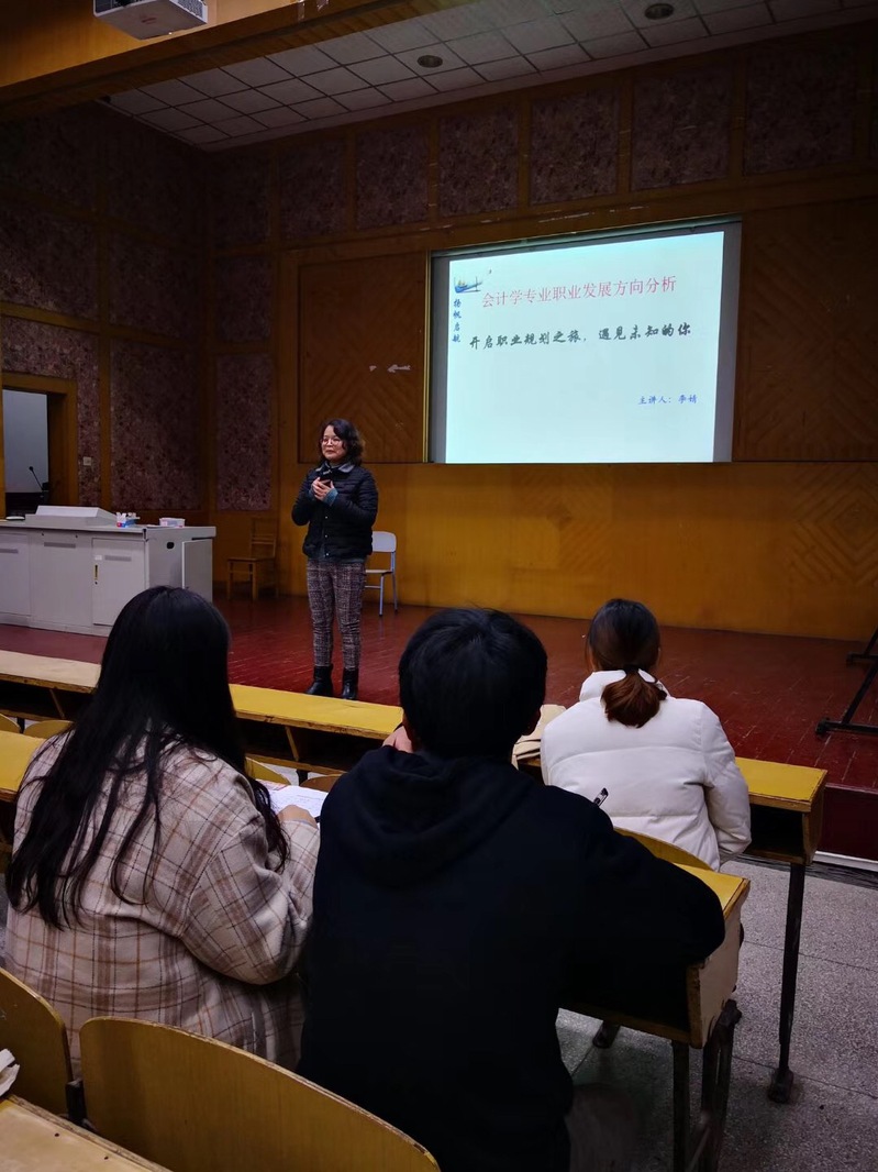 11月21日晚,开云kaiyun官方网站财税学院财政系主任、韩国庆尚大学会计学博士李婧副教授,受邀为会计系学生送来了一场专题讲座——《会计学专业职业方向分析一一开启职业规划之旅,遇见未知的你》。讲座在教三报告厅举行,由会计学专业负责人成骏副教授主持,二百余名会计系学生聆听了讲座。