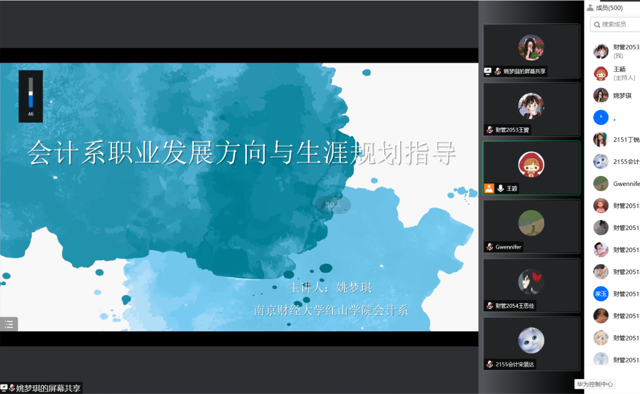 5月11日下午,我系邀请教师兼会计系主任助理姚梦琪老师,开展题为“职业发展方向与生涯规划指导”讲座,为我系低年级学生职业规划做指导。本次讲座由我系学工秘书王颖老师组织并主持,大一、大二年级近500名学生通过线上腾讯会议参与。