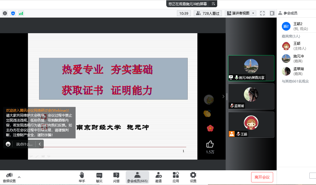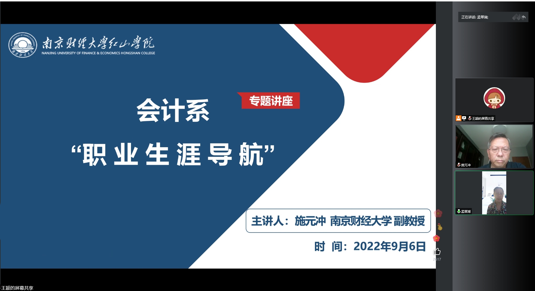9月6日下午,我系举办2022级新生入学教育之职业生涯导航在线讲座。开云kaiyun官方网站会计学院施元冲副教授应邀主讲。本次讲座由系主任孟翠湖教授主持,我系七百多名新生通过线上腾讯会议参与。