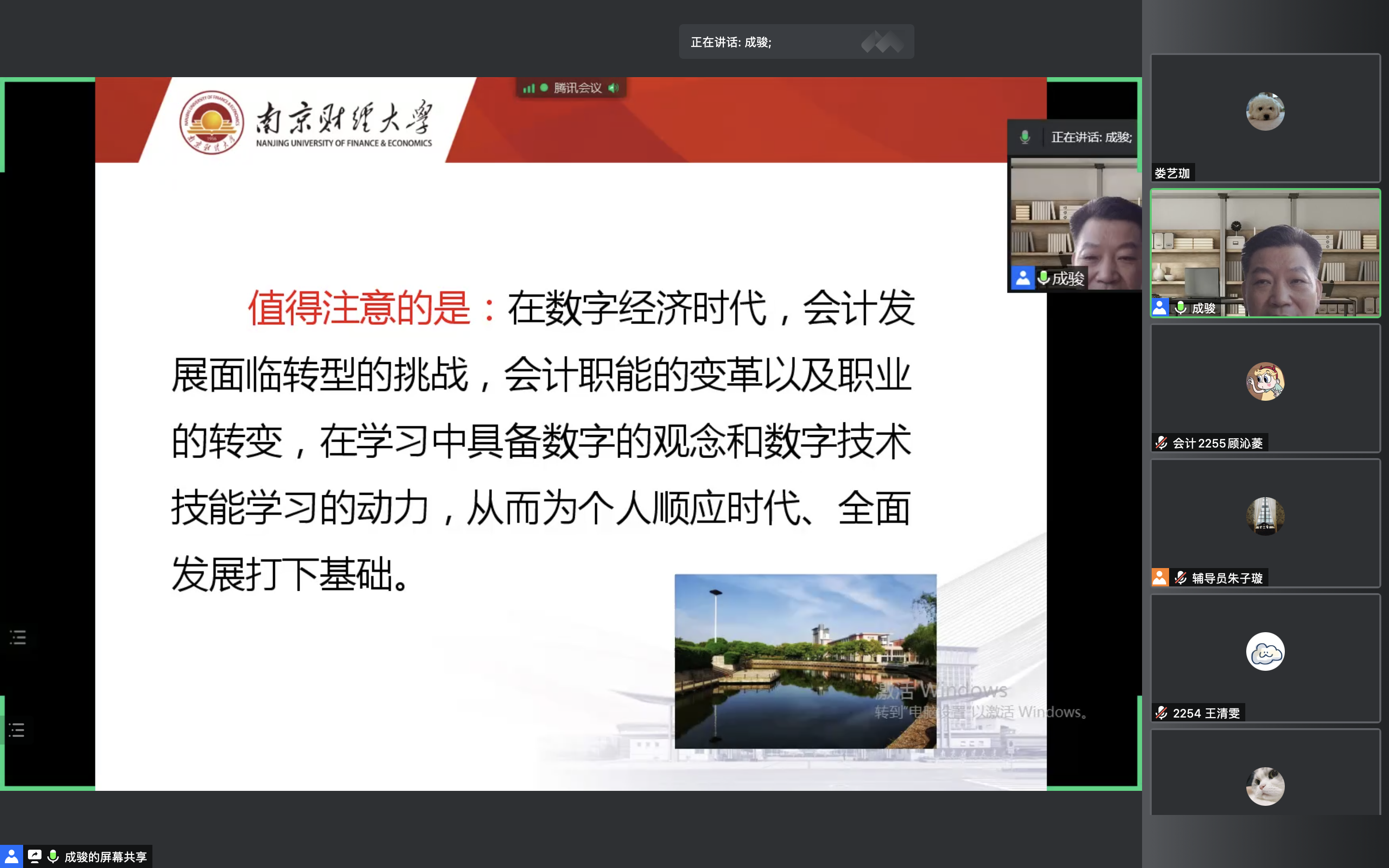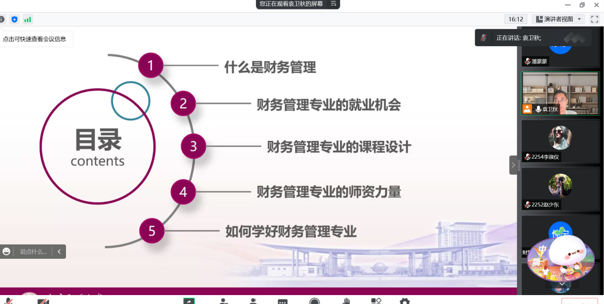 9月5日上午,我系通过腾讯会议开展2022级新生入学教育之专业思想教育专题讲座。开云kaiyun官方网站会计系系主任孟翠湖教授、会计学专业负责人成骏副教授、财务管理专业负责人袁卫秋副教授和审计学专业负责人朱海涛副教授应邀主讲,我系学工秘书、辅导员和七百多名新生线上参与。