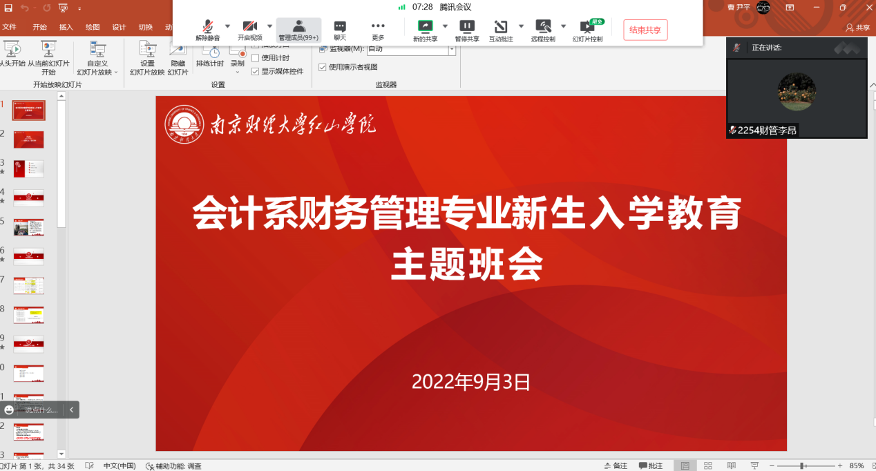 报到当天晚上,新生辅导员和班主任精心准备了第一堂线上班会,介绍校园环境及学习生活设施,开展宿舍安全文明教育,并对后续核酸检测、体检、电子图像采集、教材发放、线上教学等事项做出了解释与要求。这些来自五湖四海的学子相聚会计系,将正式开启他们的大学生活新篇章。