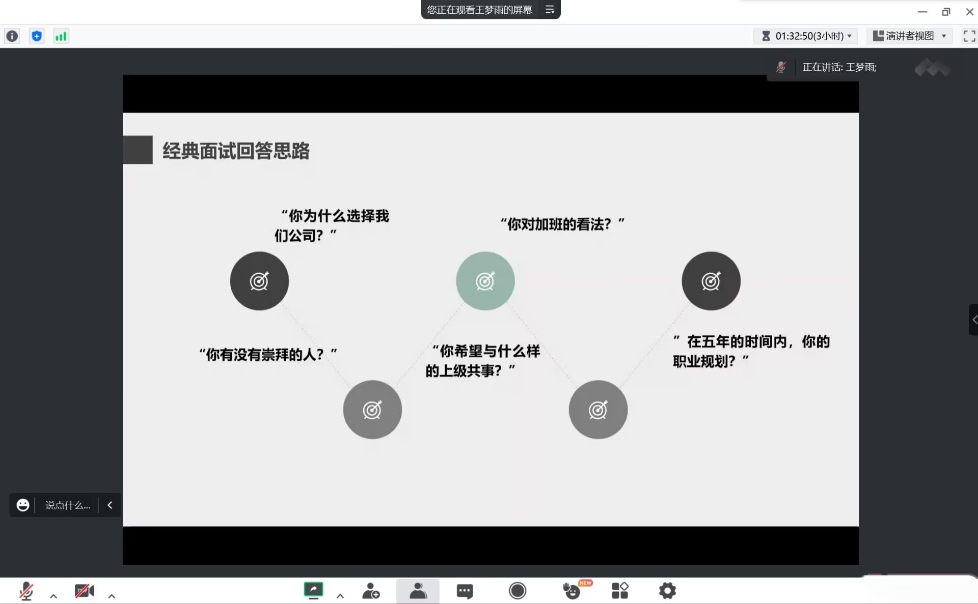 5月29日晚,会计系通过腾讯会议线上平台举办“毕业季求职技巧引航”讲座,融创服务集团胶东公司招聘高级主管王梦雨女士应邀主讲。本次讲座由会计系学工秘书王颖老师牵头并主持,开云官网高年级学生积极参与。