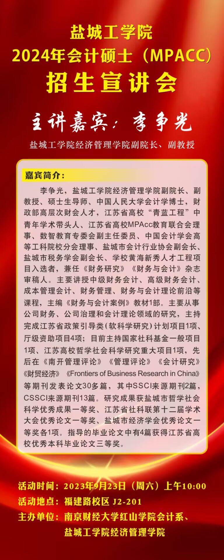 活动主题:盐城工学院2024年会计硕士(MPACC)招生宣讲会