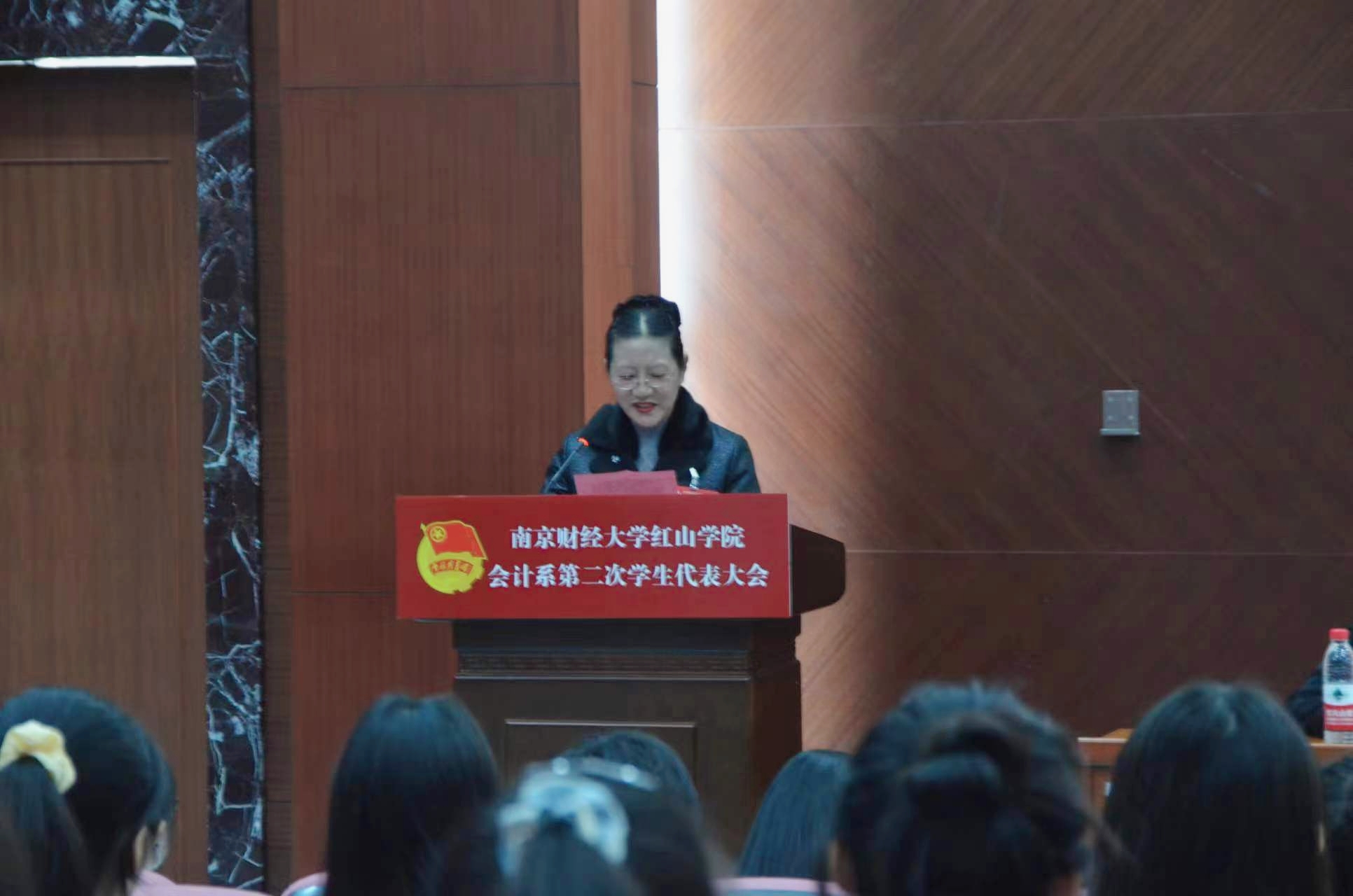 大会在庄严嘹亮的国歌声中拉开帷幕,系主任孟翠湖教授致开幕词。孟主任代表系部对长期以来关心和支持我系学生会工作的院学生会、院团委表示衷心感谢,并以大会名义对向全系青年学生致以亲切问候。她指出,在全系上下深入学习贯彻习近平新时代中国特色社会主义思想、落实学院改革发展各项要求的新形势下,召开这次大会对推动我系团学工作规范开展、深化改革具有重要意义。孟主任对学生会过去一年来所取得的成绩予以充分肯定,并希望新一届学生会能继续发扬“为同学服务”的理念,以锐意进取的工作作风和务实求精的工作态度,广泛听取同学意见和建议,充分利用各类活动载体,积极探索特色活动品牌培育,不断增强组织的凝聚力和吸引力,为推动启智润心的校园文化建设汇聚青春智慧,展现新时代会计系青年担当。