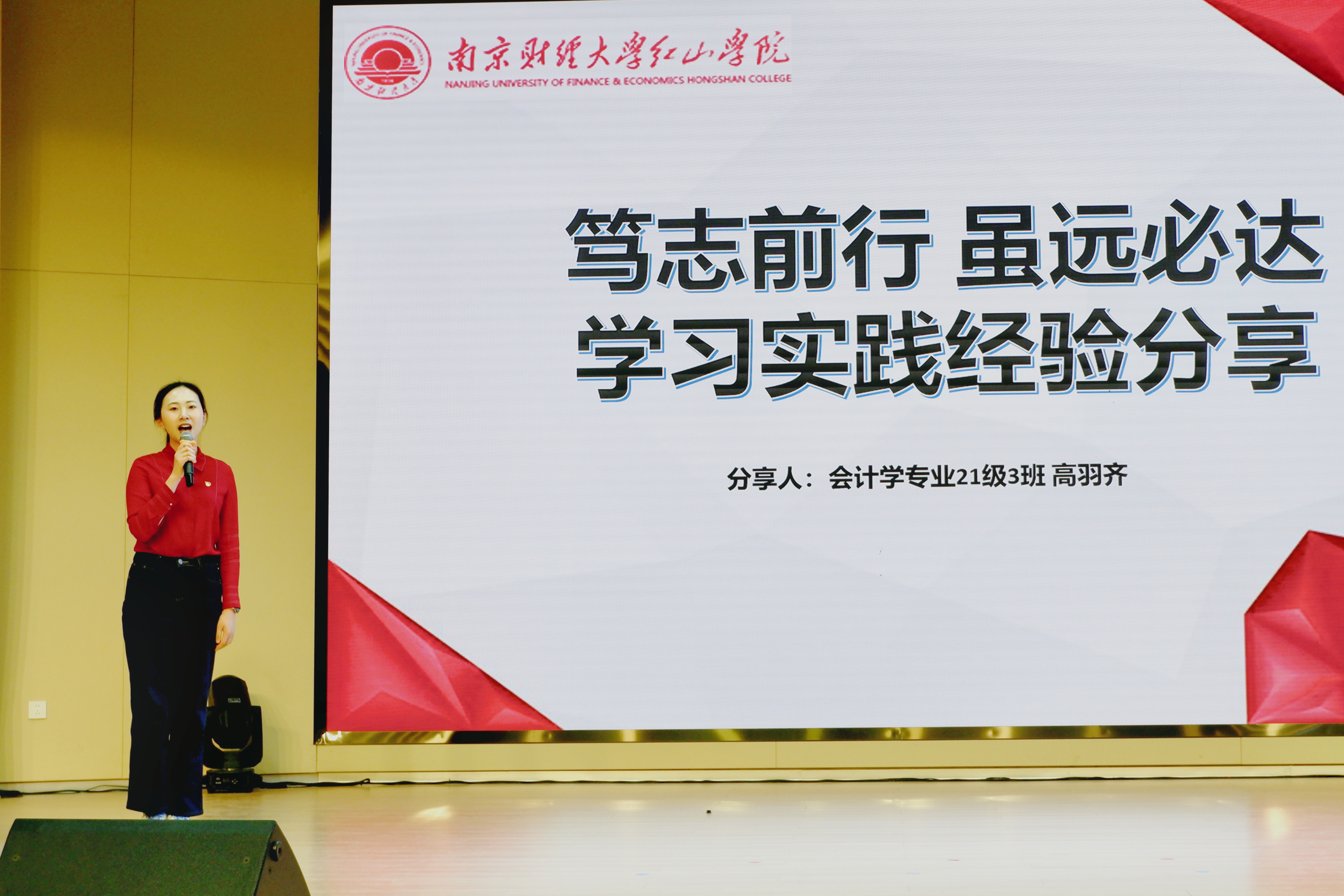 朋辈经验“微分享”环节,国家奖学金获得者、省级优秀学生干部会计2153班高羽齐同学结合自身成长经历,做学习、实践经验分享。她强调,学弟学妹们要重视校内专业课程的学习,制定适合自己的学习计划,学会利用各类软件、平台高效学习;主动参与课外实践实习,丰富履历,增强未来就业的竞争力;合理平衡学习、工作和生活,主动去探索和尝试,培养自己的兴趣爱好;积极参与志愿服务活动,拓宽视野,为社会贡献青春力量。