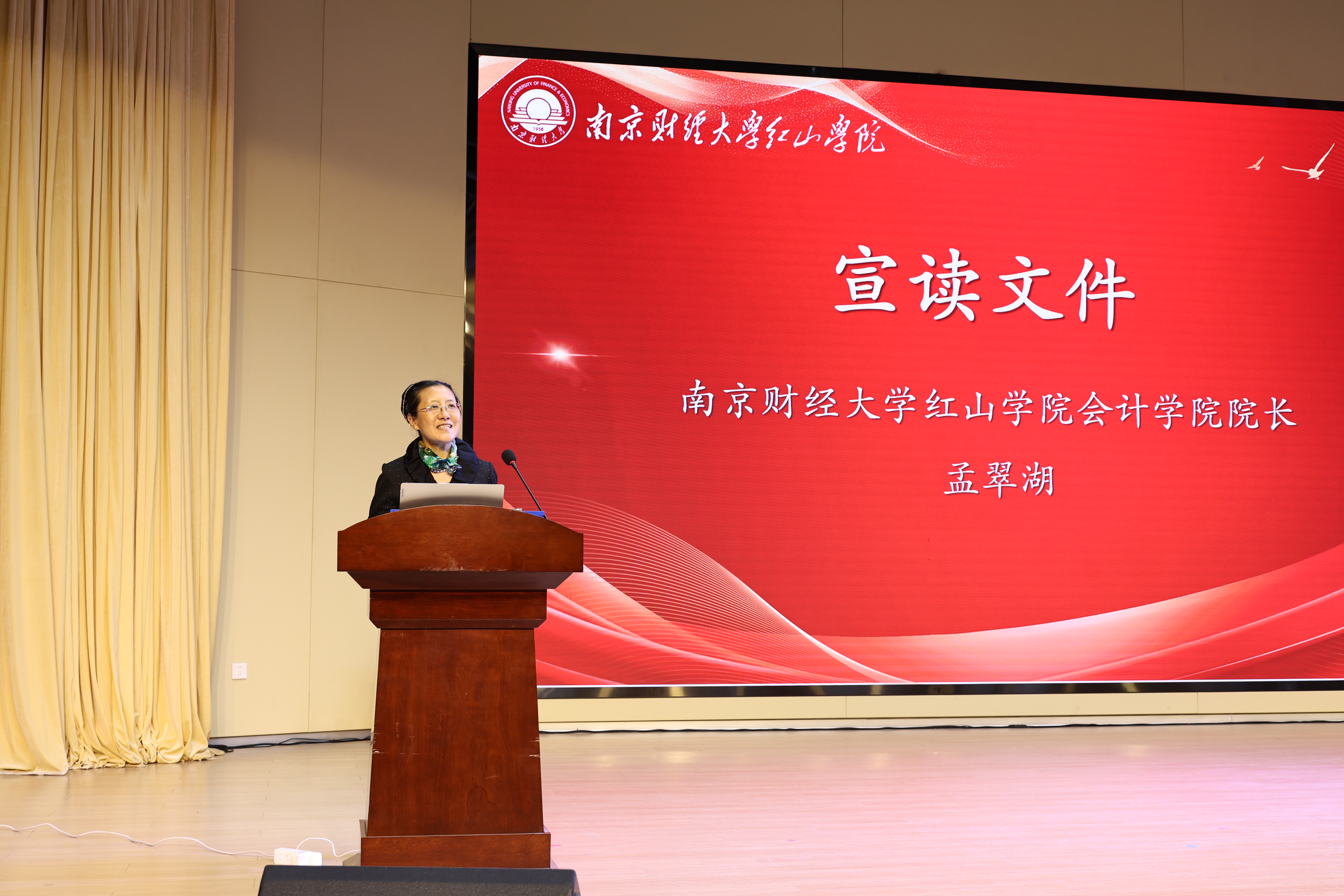 会计学院院长孟翠湖宣读文件