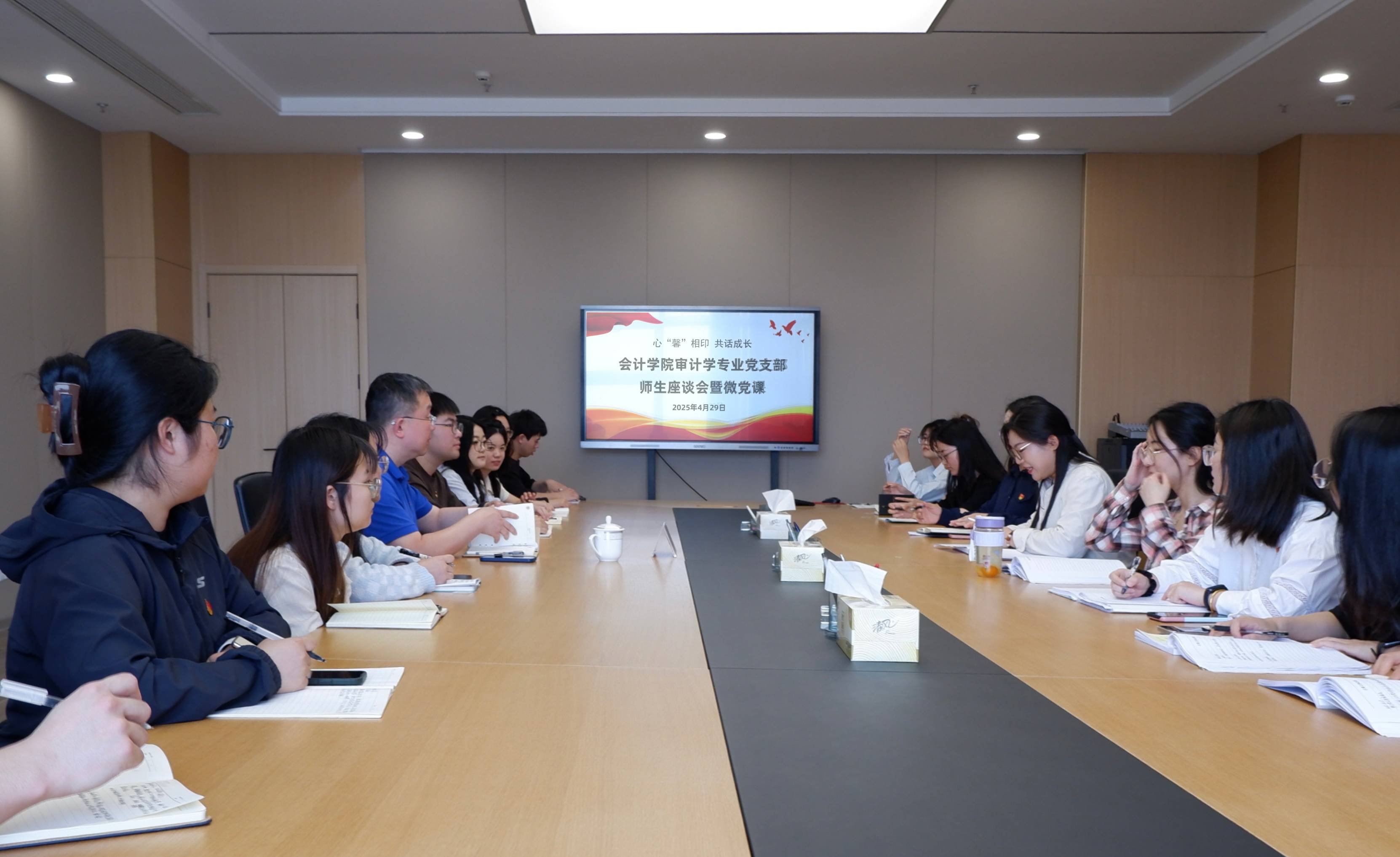 为充分发挥政治辅导员引领作用,积极探索开拓学生党支部建设新途径,切实提高基层党建工作实效,4月29日中午,会计学院审计学专业党支部在高淳校区图书馆第一会议室举行师生座谈会暨微党课主题活动。学院党委书记、审计学专业党支部政治辅导员孙彬出席座谈会并做微党课。活动由审计学专业党支部书记吴昊冉主持。