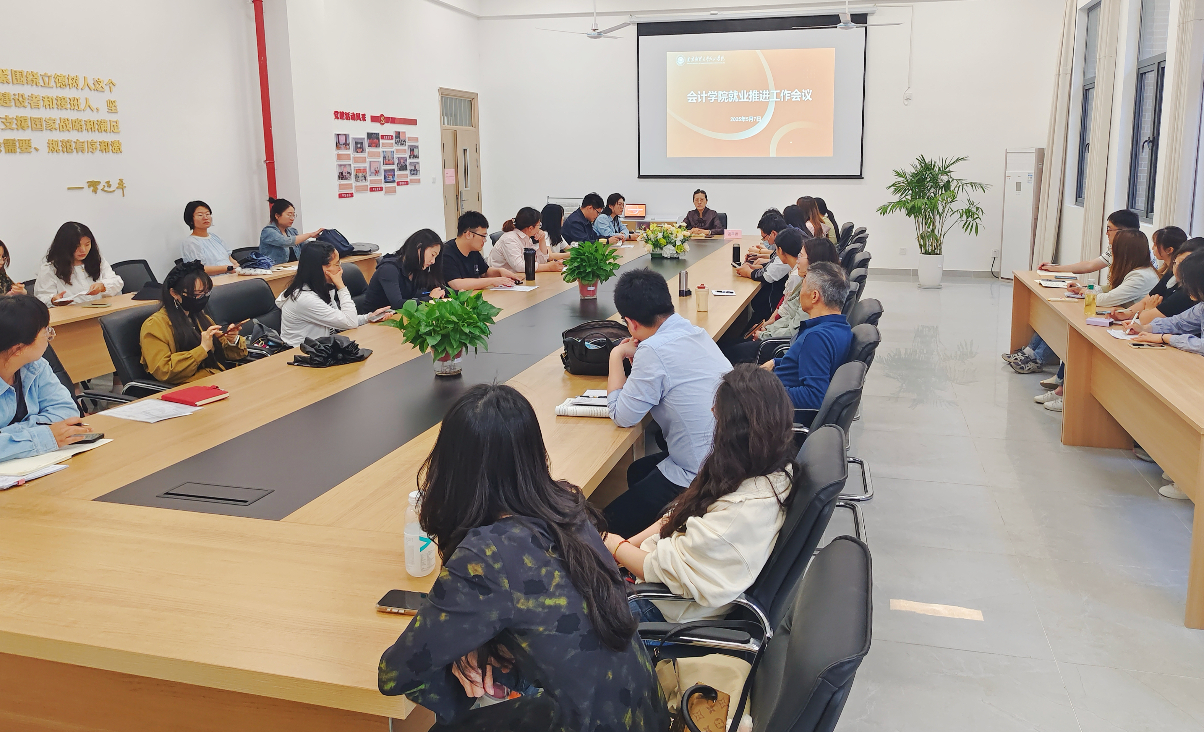 为扎实推进2025届毕业生就业工作,抢抓就业关键期,5月7日下午,会计学院在智圆楼124会议室召开就业工作推进会。会议由会计学院院长孟翠湖主持。会计学院团总支副书记兼学工秘书吴昊冉、各毕业班辅导员、班主任及论文指导老师共同参会。