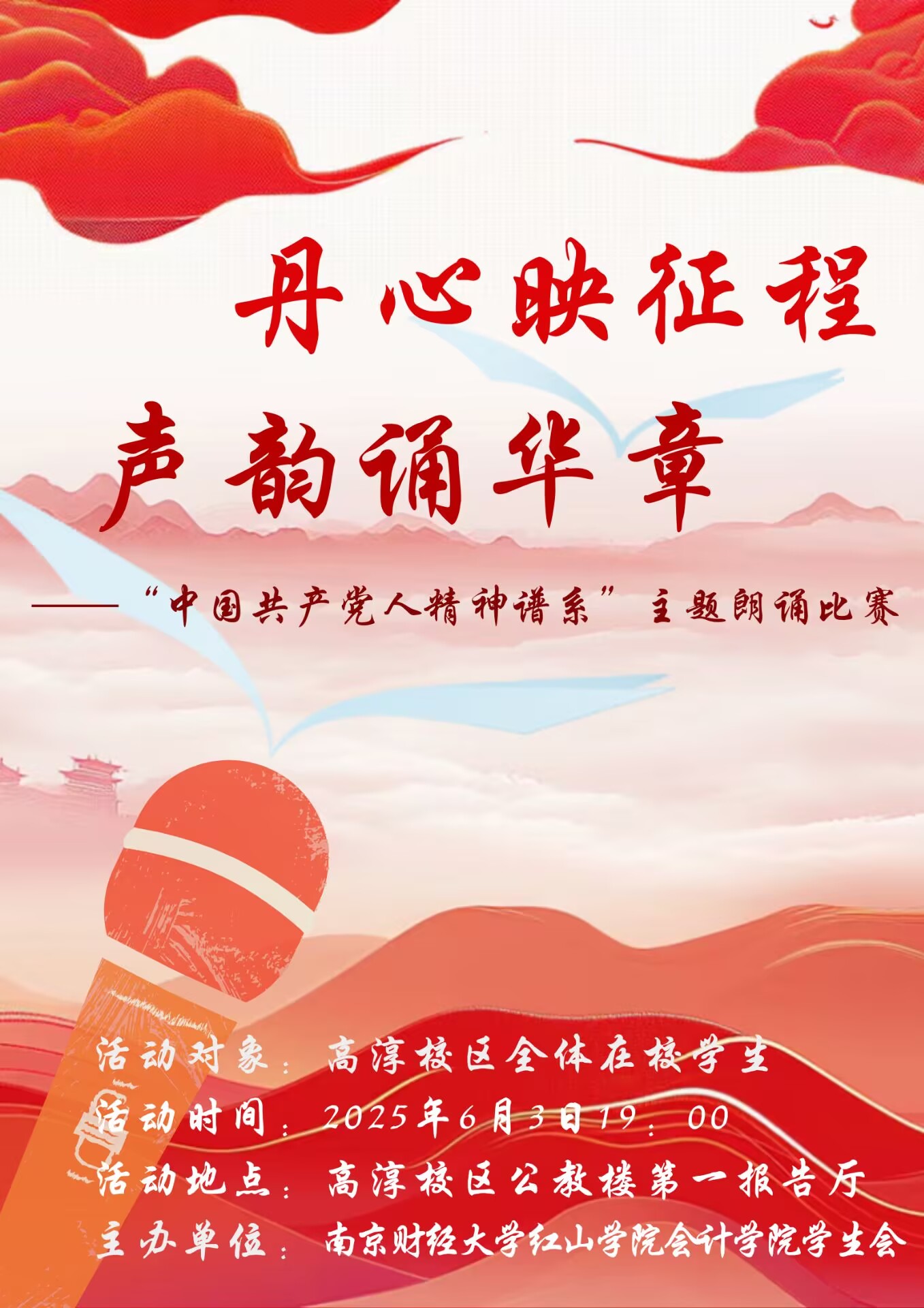 为赓续红色基因,强化思想引领,锻炼提升青年学生的朗诵能力、表达能力和逻辑思维能力。开云kaiyun官方网站会计学院学生会将举办“丹心映征程,声韵颂华章”——中国共产党人精神谱系主题朗诵比赛,现将有关事项通知如下: