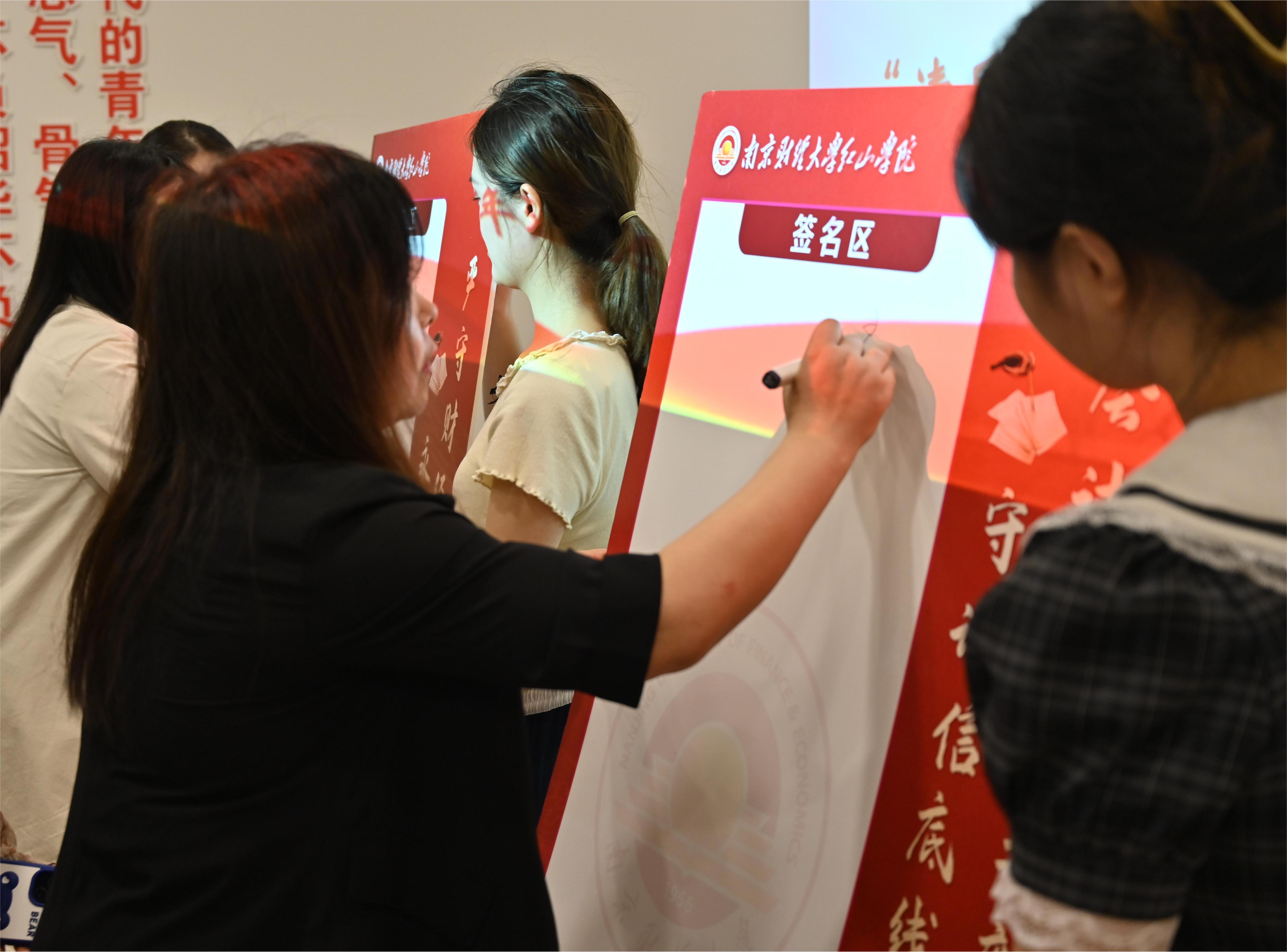 全体师生在“清风守正•廉洁会计”承诺墙上郑重签下姓名,将“严守财经纪律红线,永葆会计清廉初心”的铮铮誓言镌刻于纸面,化作未来践行的行动指南。最后,支部书记陈朋带领全体党员重温入党誓词。