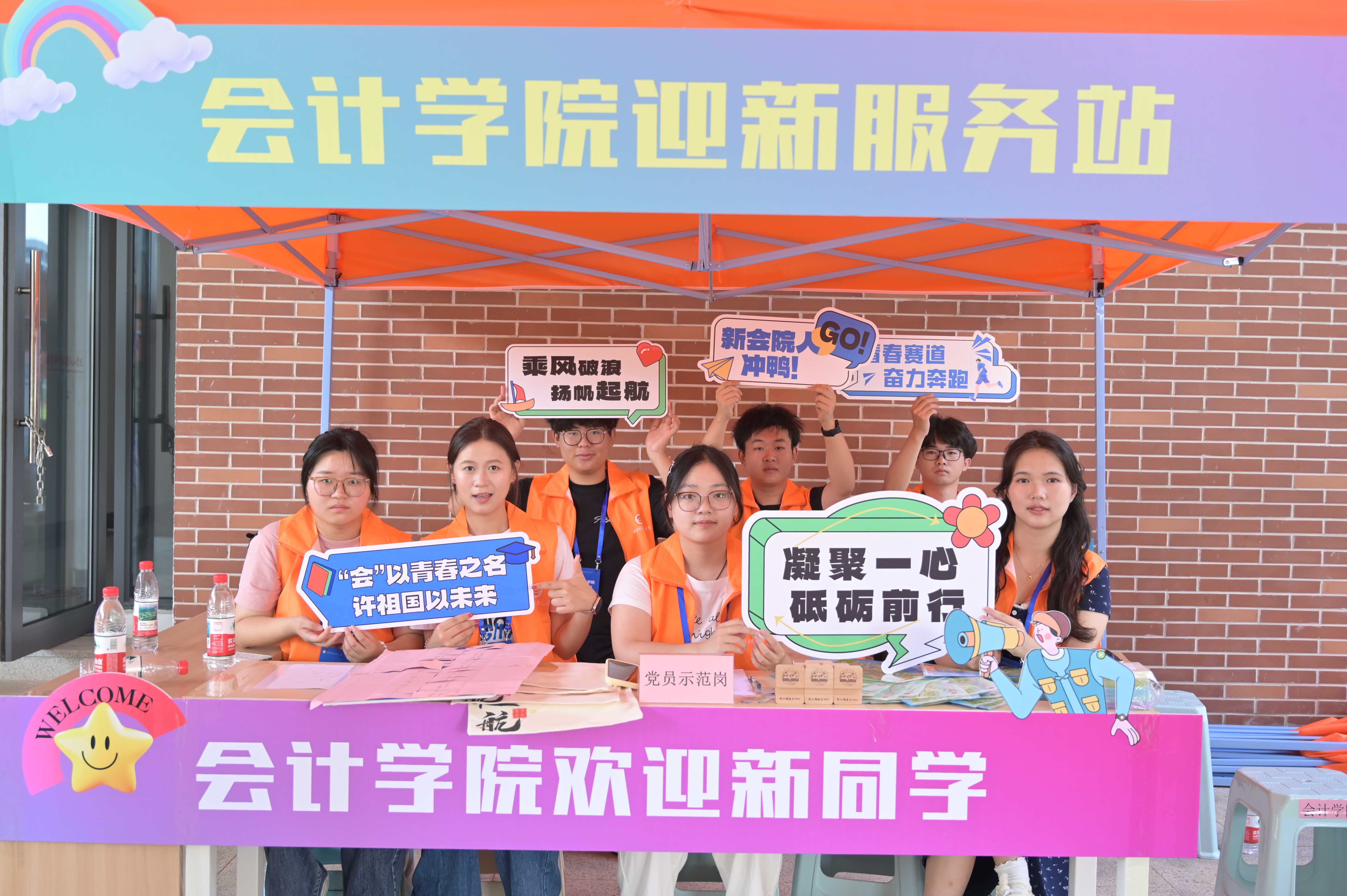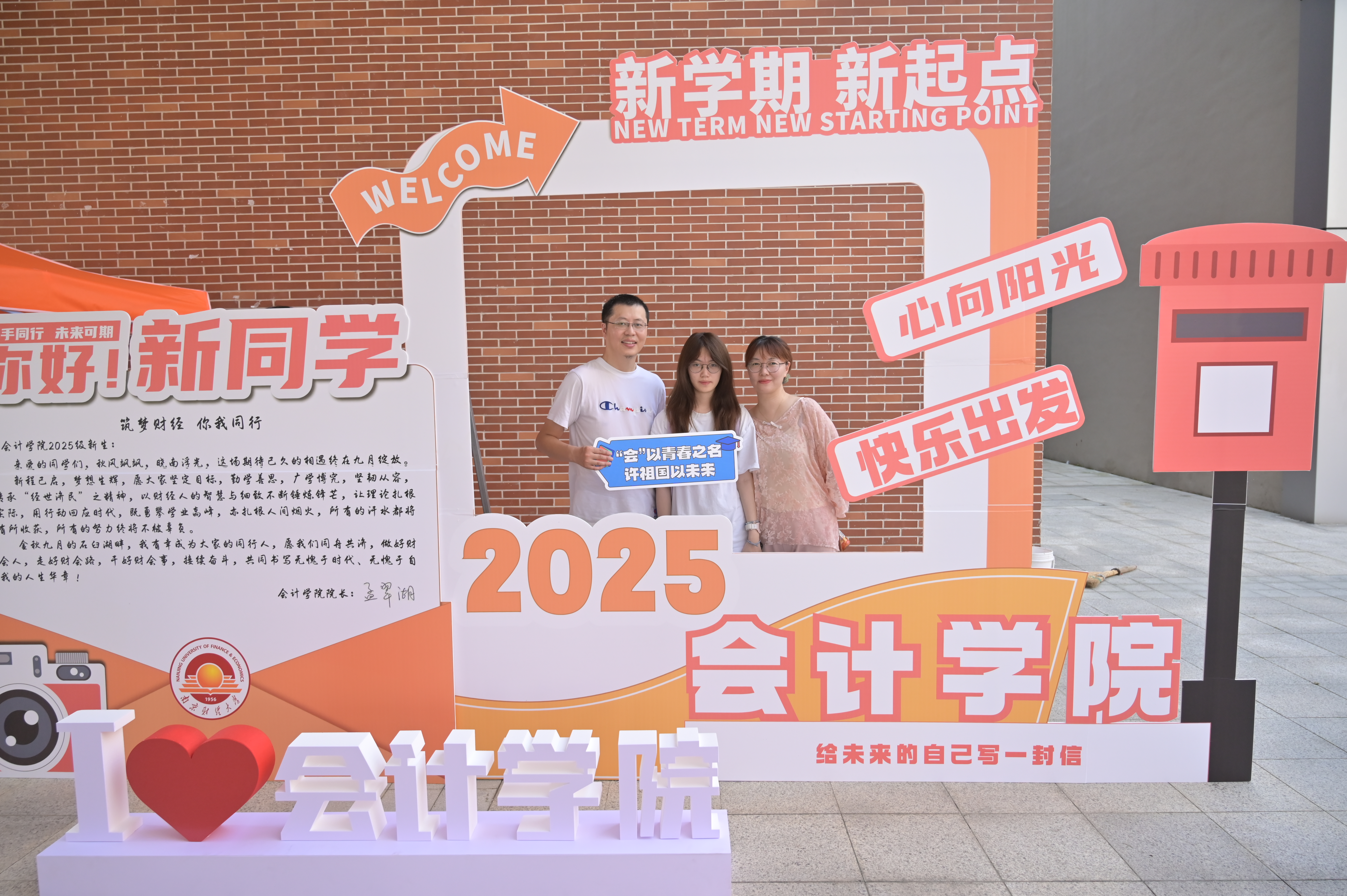 会计学院迎新打卡点,新生与家长定格美好瞬间