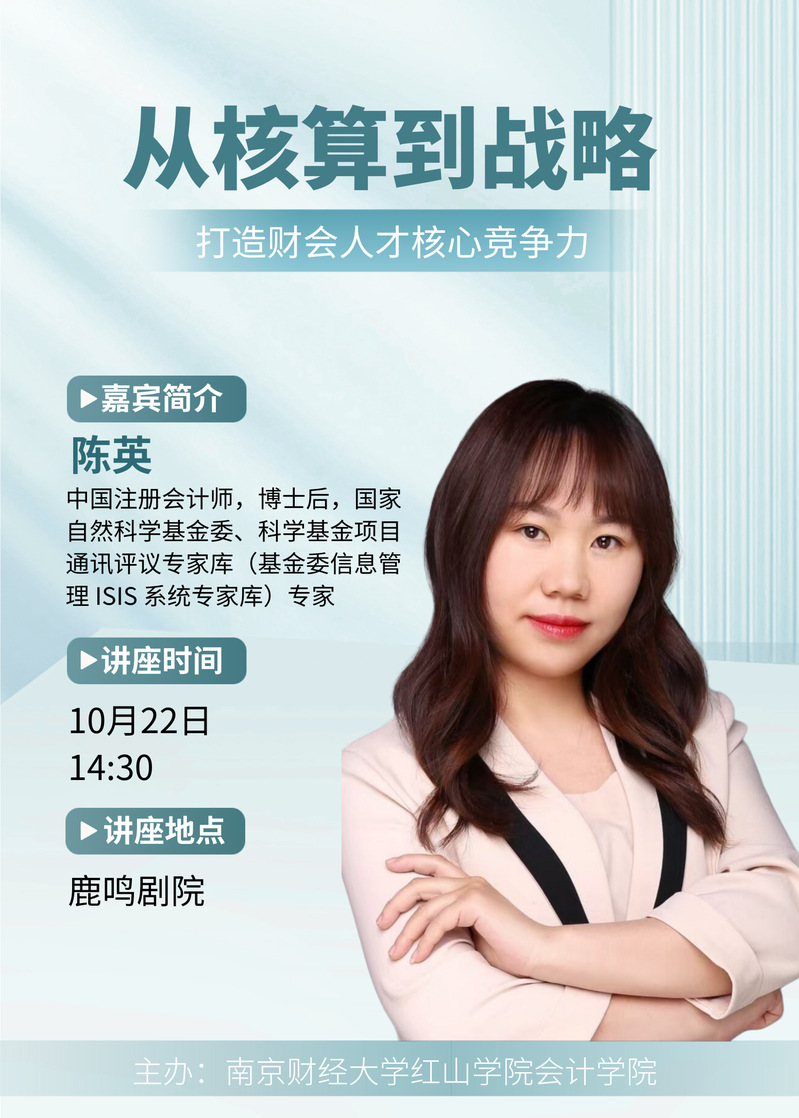 主讲嘉宾:陈英,中国注册会计师,博士后,国家自然科学基金委、科学基金项目通讯评议专家库(基金委信息管理ISIS系统专家库)专家。