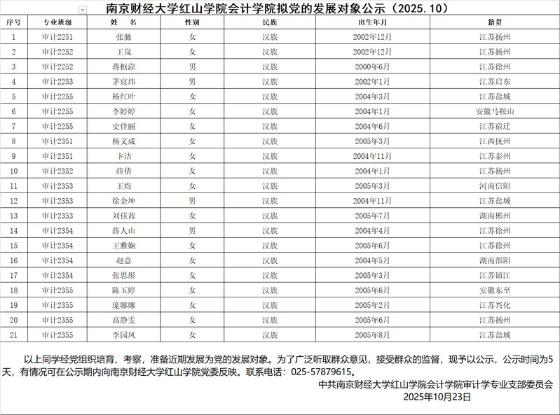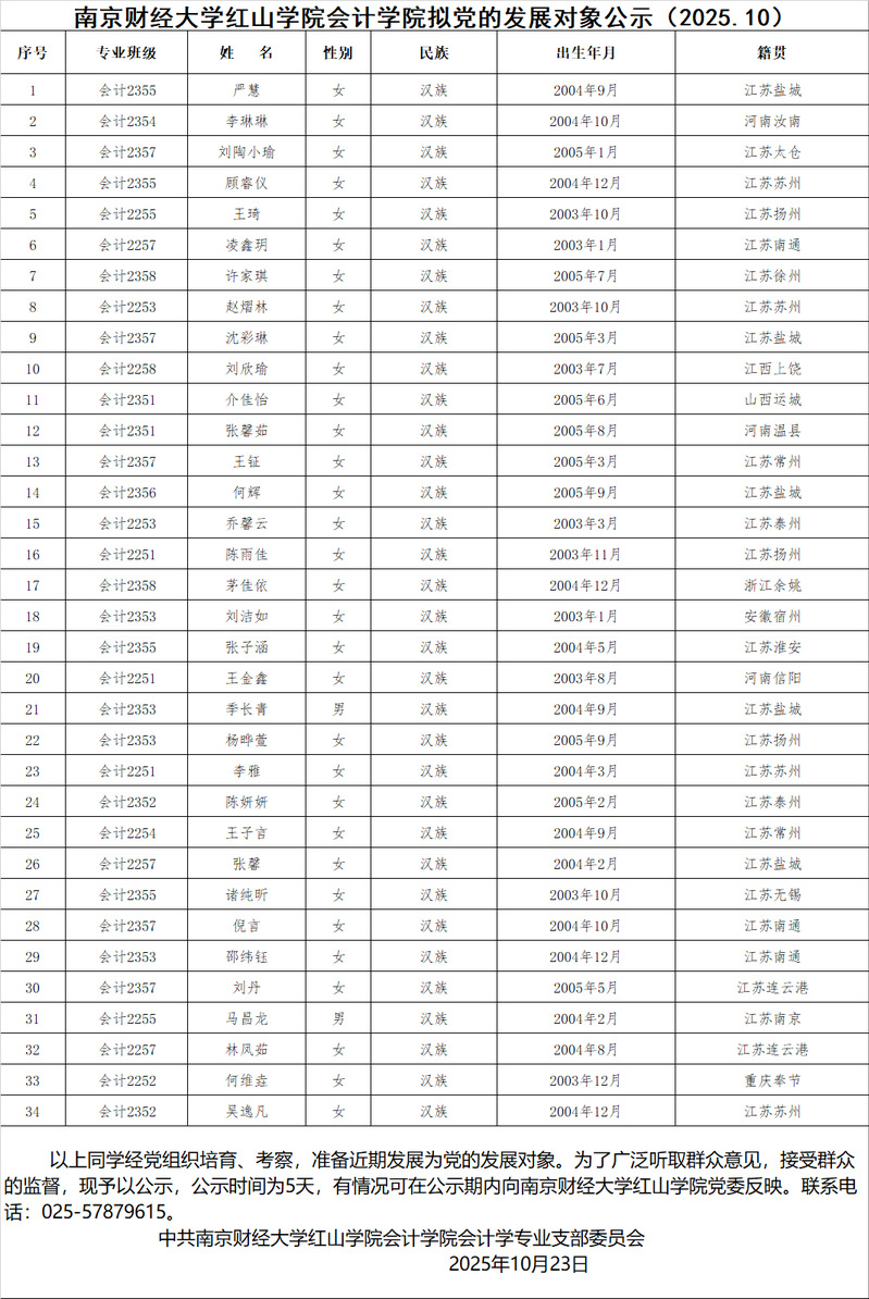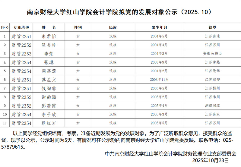 开云kaiyun官方网站会计学院拟党的发展对象公示(2025.10)