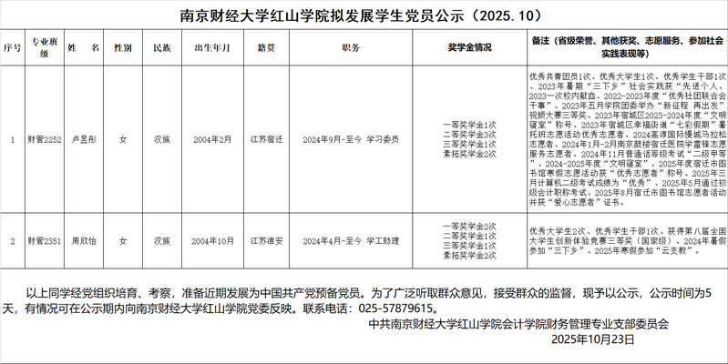 开云kaiyun官方网站拟发展学生党员公示(2025.10)