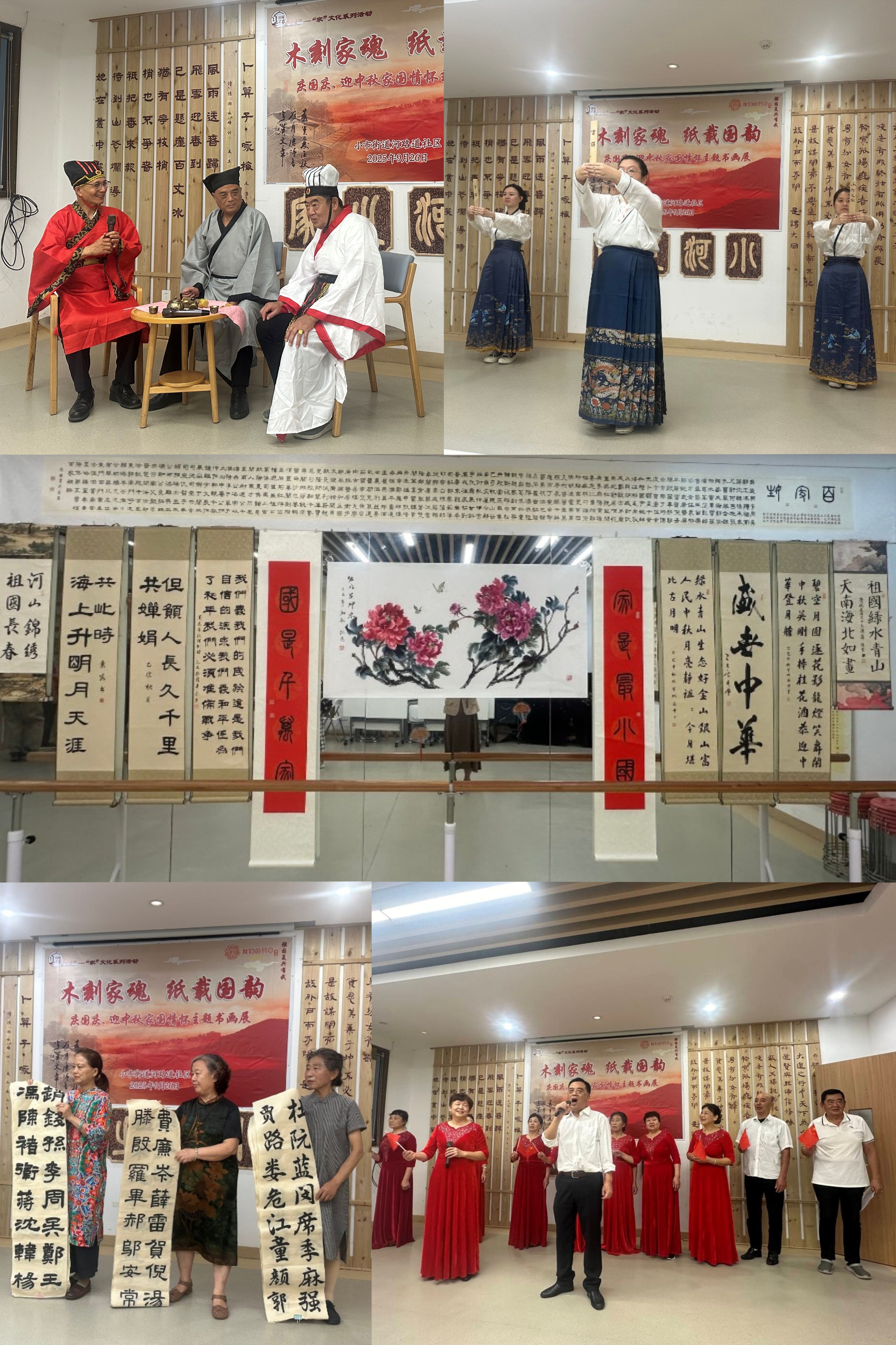 活动以“传统艺术致敬家国情怀”为核心,环节丰富:社区工作者用独舞《中国书法》演绎笔墨神韵;小河书画社朱宝山等三位艺术家分享木刻、书画创作故事,解读传统艺术魅力;经典吟诵《百家姓》、古朴《书简舞》依次呈现,传递传统文化底蕴;小河剧社与书画社联袂带来情景诗朗诵《但愿人长久千里共婵娟》,诠释中秋情愫;全体人员合唱《我和我的祖国》,将活动氛围推向高潮。