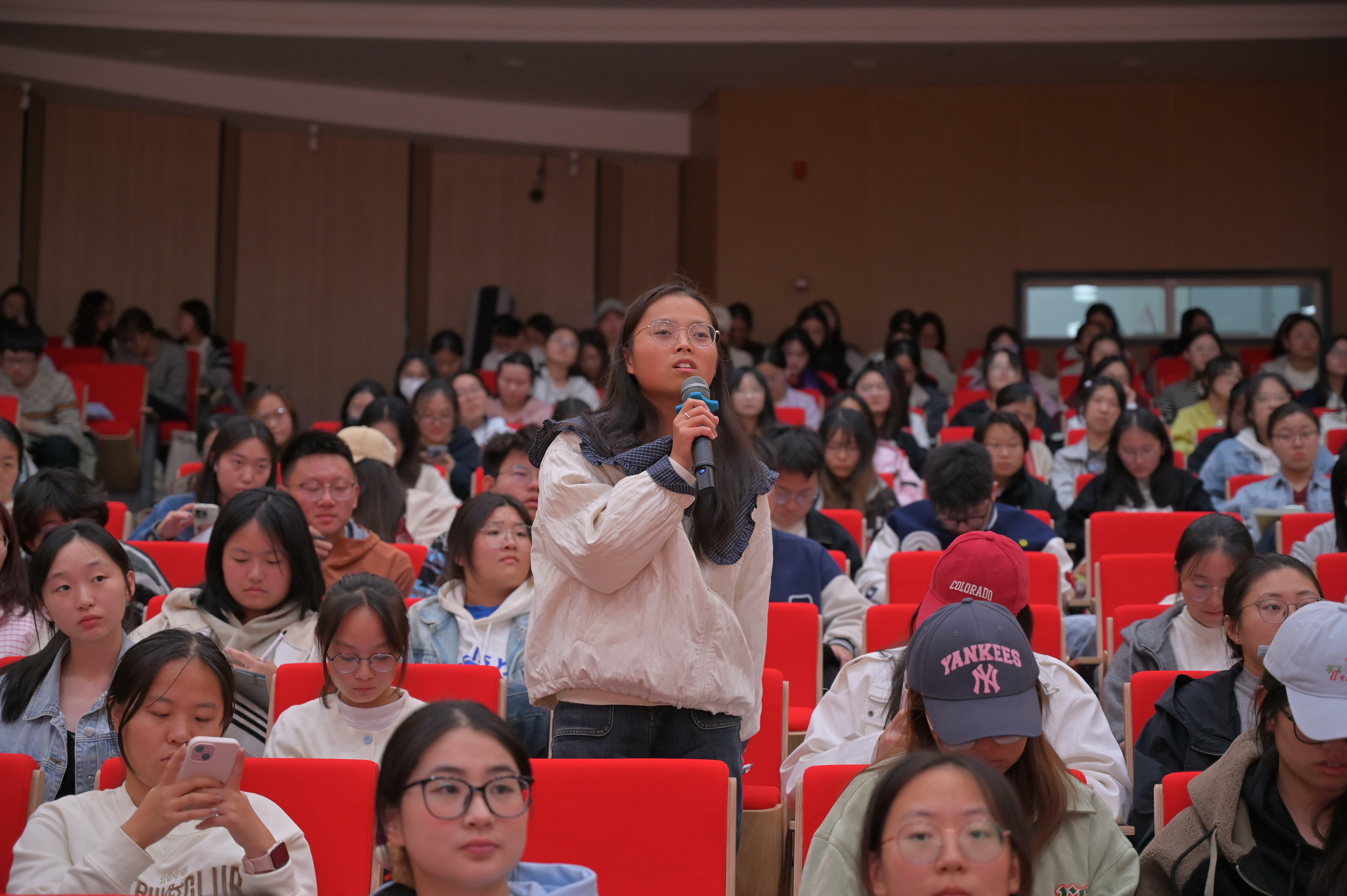 陈英老师聚焦同学们普遍关切的就业问题,结合大量真实案例,深入浅出地剖析了当前就业市场前景与企业核心选才需求。她强调,面对日益激烈的人才竞争,提升个人专业核心竞争力已成为关键。为此,她建议同学们:一要深耕专业课程,筑牢理论基础,这是竞争力的根本;二要积极考取行业权威从业资格证书,为专业能力加持;三要利用课余时间参与专业相关实习,搭建“学”与“践”的桥梁,将理论知识转化为实战能力,为求职简历积累亮点。针对简历撰写,陈英老师特别提醒,同学们需尽早明确职业规划,树立简历主动优化意识,通过高质量简历精准呈现个人优势。同时,要主动把握校园招聘、各类专场招聘会等契机,积极自荐以争取更多就业机会。在互动答疑环节,三位同学分别就实习规划、学科竞赛及择业方向提出疑问,陈老师逐一给出针对性解答,现场反馈热烈。