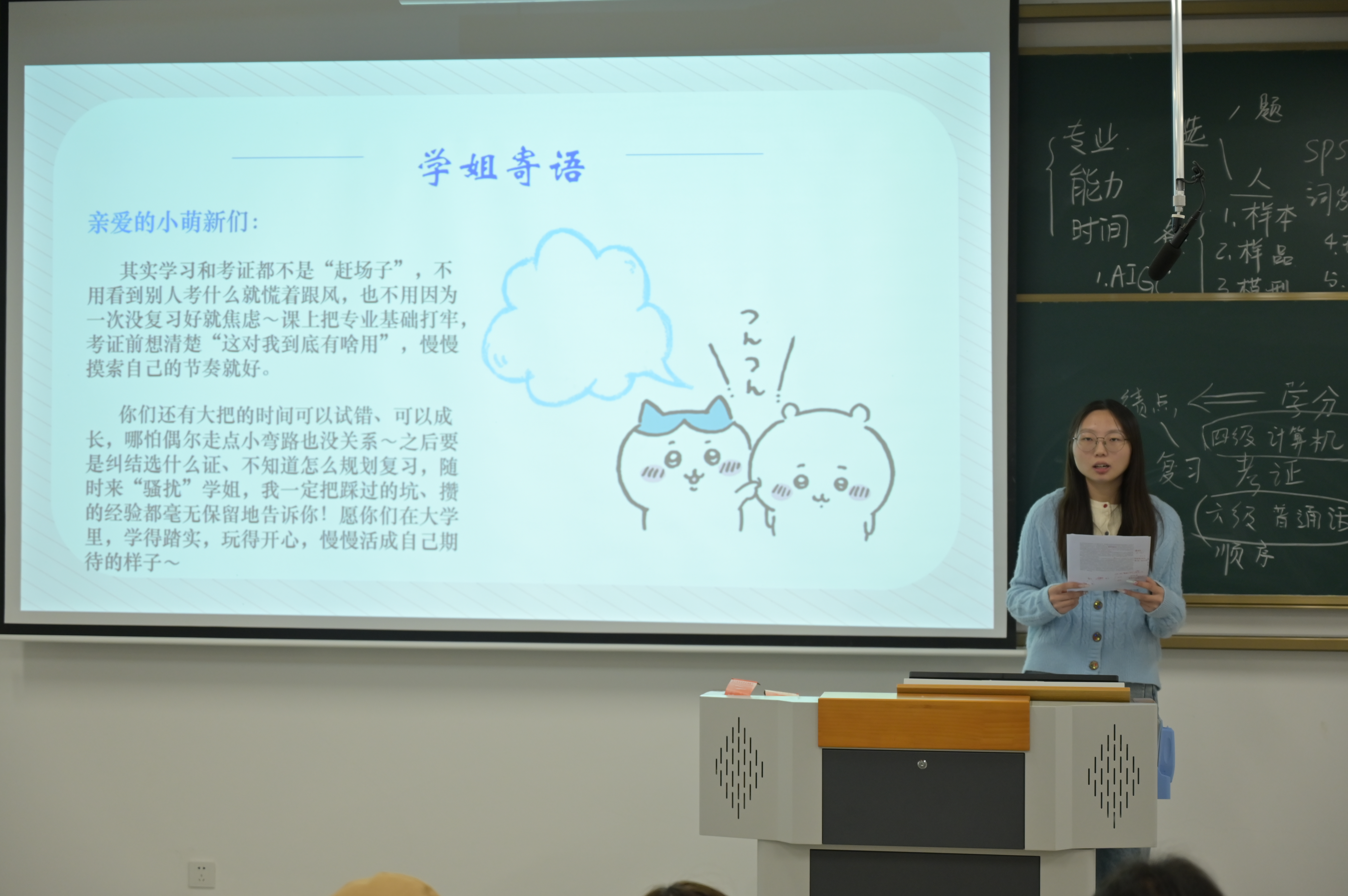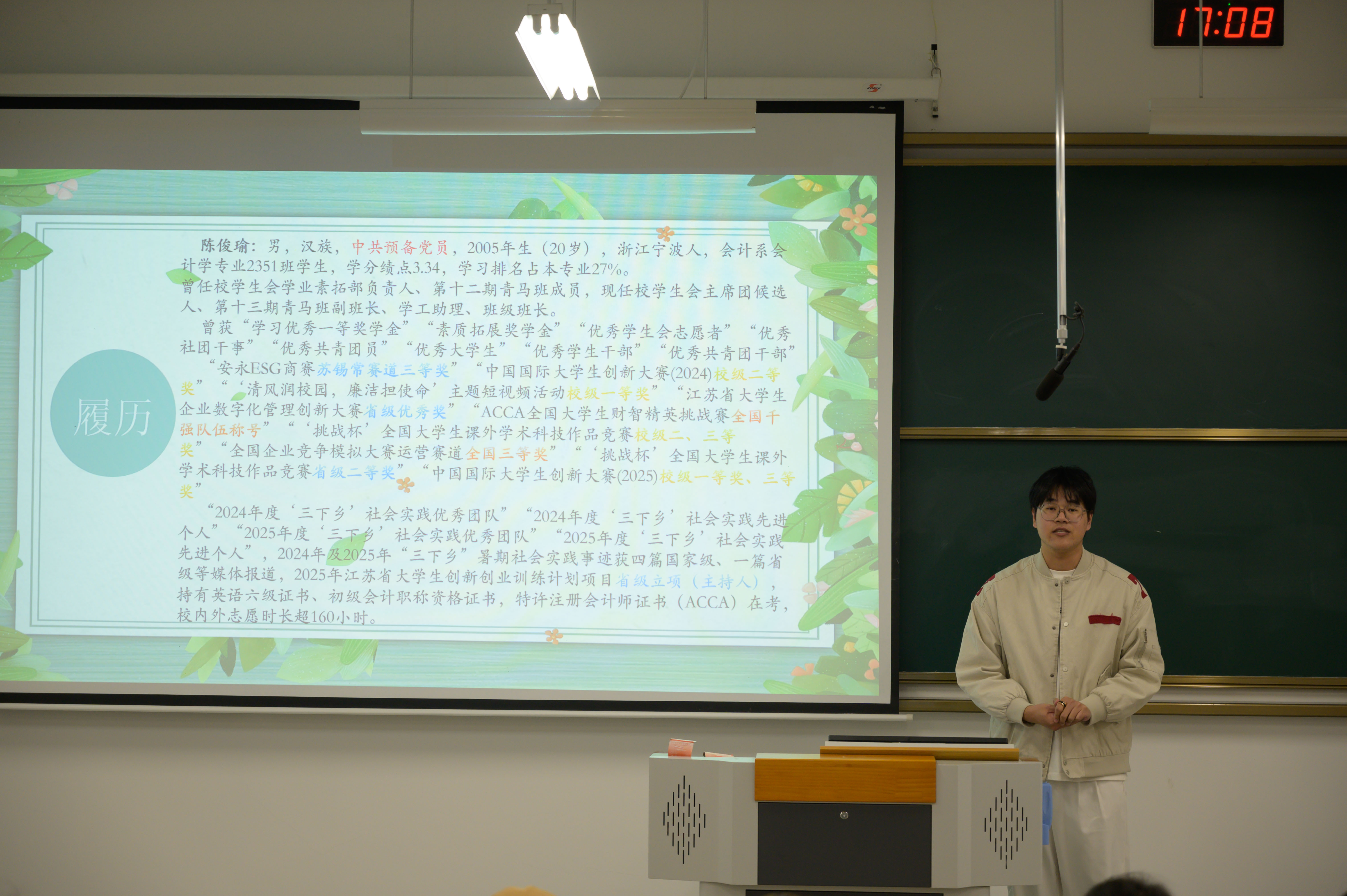 分享会上,陈俊瑜结合自身竞赛获奖经历,聚焦学科竞赛备赛方法,梳理赛事核心赛道与技巧,鼓励同学们挖掘潜力、以赛促能。杨鑫雨以“学习筑基,考证赋能”为主题,分享实用学习方法,强调专业学习需“课上专注+课后复盘”双管齐下,并针对财会专业证书备考提供技巧。
