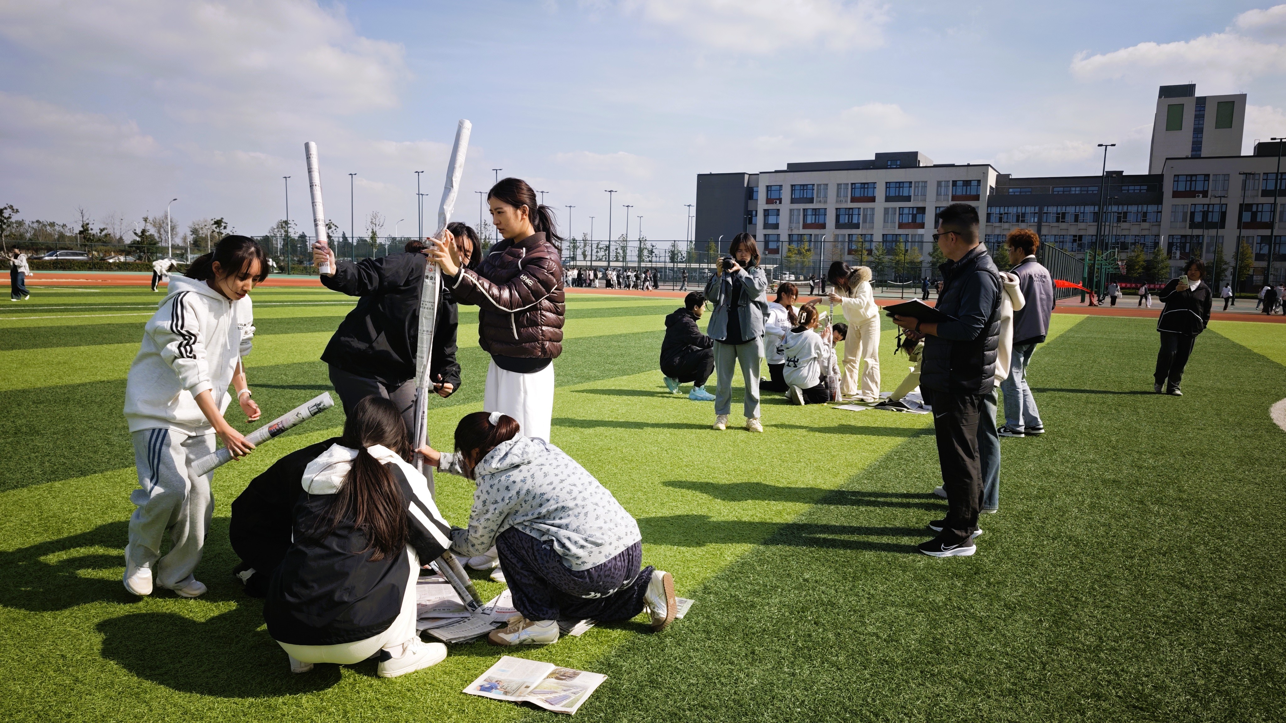 本次活动由会计学院“以动‘会’心”辅导员工作室精心策划,打破传统体育活动与心理辅导的壁垒,构建起“体能锻炼+心理疏导”的双重体验模式。设计的活动环节层层递进:从“韵律与共鸣”破冰初识、快速凝聚团队,到“压力气球大作战”酣畅释放情绪,再到“信任盲行”深化彼此默契,直至“动感筑塔”考验战略协作——各小队分工明确并肩攻坚,全程在体育教师杨怀波的专业体能指导与心理教师王敏的实时情感引导下,于肢体舒展中完成心理赋能,在协作比拼中锤炼团队精神。