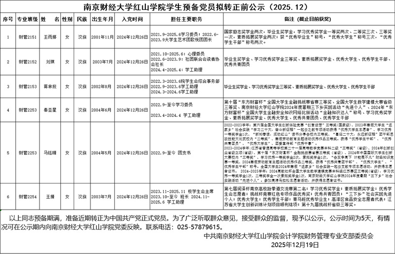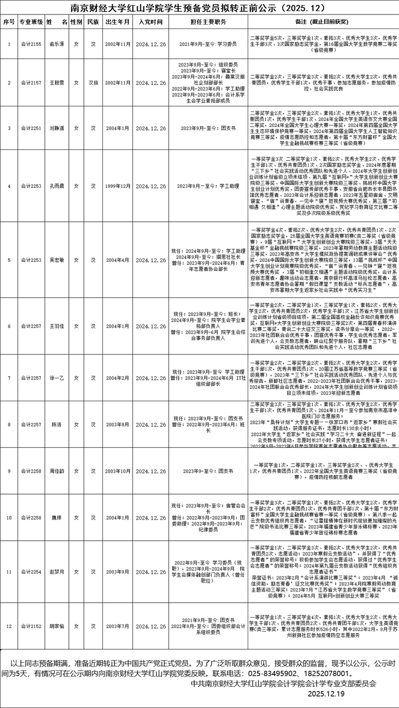 开云kaiyun官方网站学生预备党员拟转正前公示(2025.12)