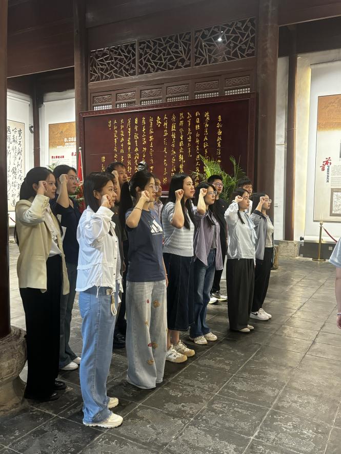 “我志愿加入中国共产党,拥护党的纲领,遵守党的章程……”在场馆的党旗墙前,全体师生党员庄严列队,面向鲜红的党旗,高举右拳,重温入党誓词。铿锵有力的誓言在展厅内回荡,表达了师生党员赓续红色血脉、永葆初心使命的坚定信念。