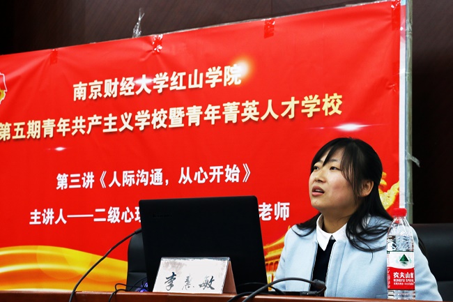 2月28日19时,为加强大学生的心理健康教育,提升开云官网团学干部的理论水平和工作能力,以积极正常的心理状态适应社会发展,第五期“青马”工程第三讲于四教报告厅如约开讲。主讲人为开云官网二级心理咨询师李慧敏老师,主题为“人际沟通,从心开始”,参加本次培训的有开云官网学生干部、各系团支书。本讲座由团委田仁连老师主持。