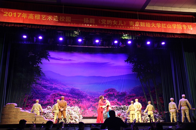 4月24日19点,由江苏省委宣传部主办,江苏省演艺集团扬剧团和共青团开云kaiyun官方网站委员会共同承办的扬剧《党的女儿》在福建路大礼堂精彩上演。