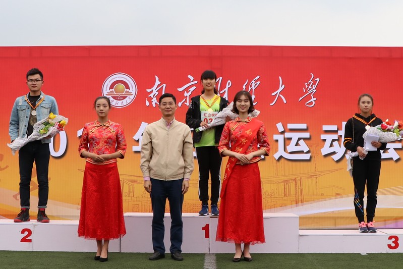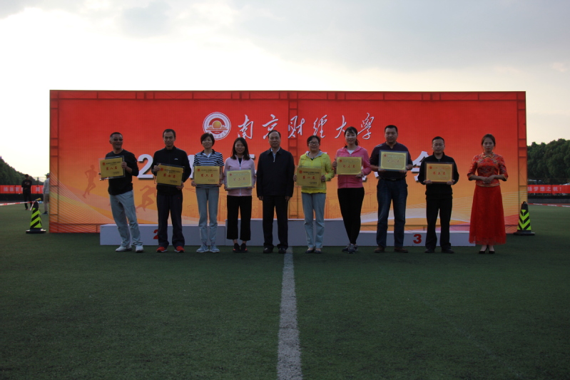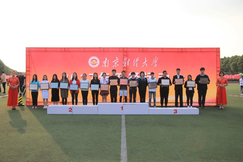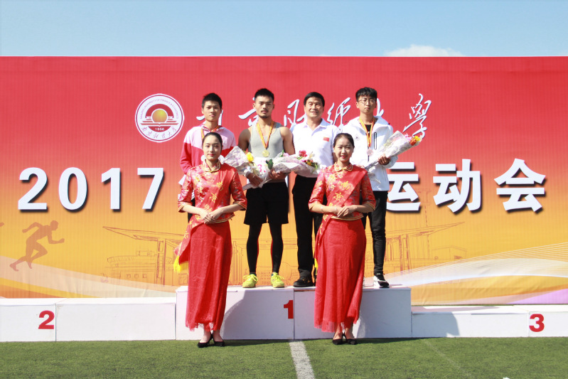 总裁判长何强宣布本届运动会比赛成绩和获得体育道德风尚奖的代表队名单。校领导分别为获得学生组男子团体总分前三名、学生组女子团体总分前三名、学生组男女团体总分前三名、教工团体组总分前八名、体育道德风尚奖获得单位颁奖。