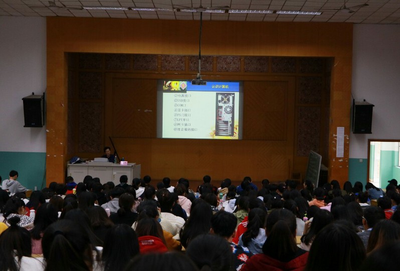 讲座伊始,黄老师向大家介绍计算机组成部分及台式计算机上各接口的用途,并详细解释USB、LPT等计算机常用术语的含义,让同学们对计算机有初步认识。随后,黄老师又从计算机的使用事项、电脑配件、计算机硬件及软件知识做详细的讲解。