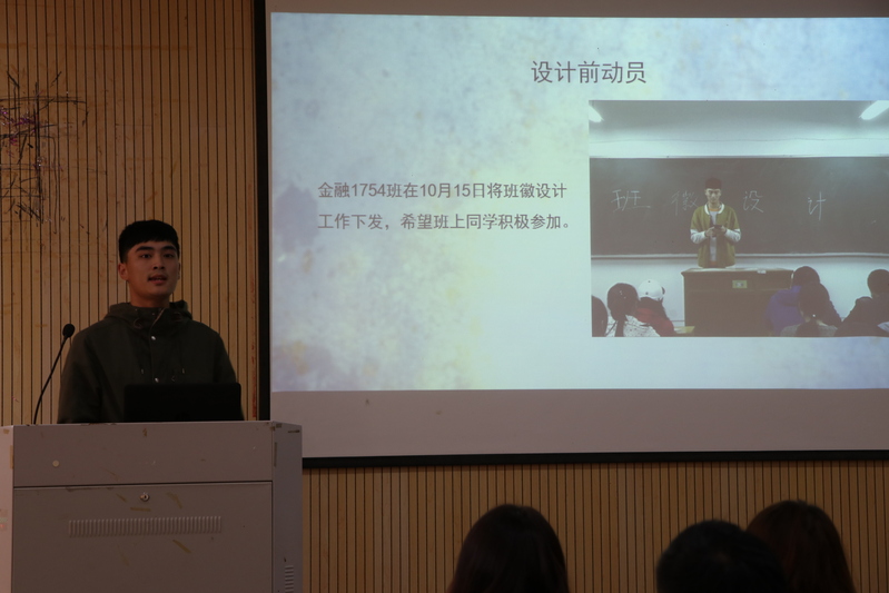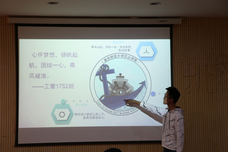 本次班徽设计大赛面向2017级学生积极开展,活动中参赛选手积极准备,各班团支书通过PPT形式向大家展示了各自班徽的设计过程。首先,班级内部经过讨论投票选出班徽素材。其次,经过手绘和PS等不同方式制作出精美的班徽图案。最后,由班级内部投票选出票数最高的作品作为本班的班徽。