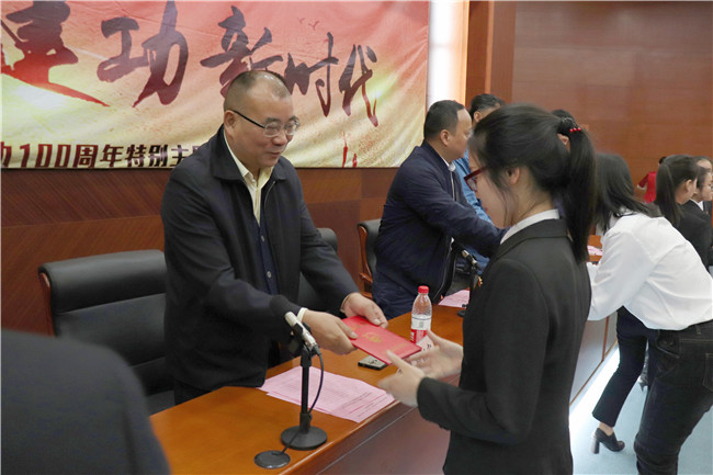 主席台领导为受表彰的先进集体和个人颁奖。
