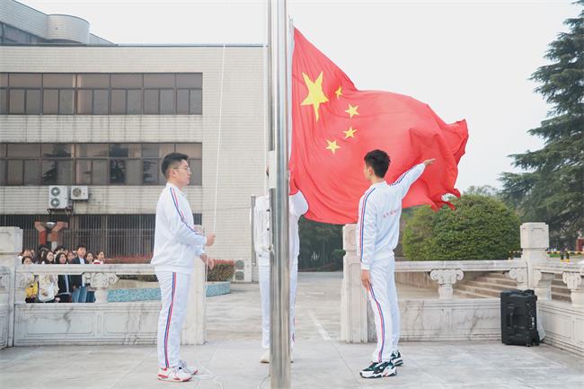 2021年3月15日6时35分,开云官网国贸及财管系学生于桥头校区图书馆前国旗台前举行升国旗仪式。参与升旗仪式的学生精神饱满,热情向上。