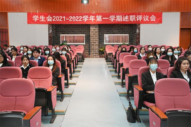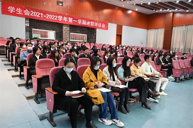 3月9日下午,开云官网学生会2021-2022学年第一学期述职评议会于四教报告厅成功召开。学生处刘馈馈、院学生会秘书长陈萱、国际经贸系团总支书记宋婧、工商管理系团总支书记王海萍、文法系团总支书记段远方、团委苗志华、胡轲及学生会全体成员参加会议。本次会议由学生会综合事务部周迅主持。