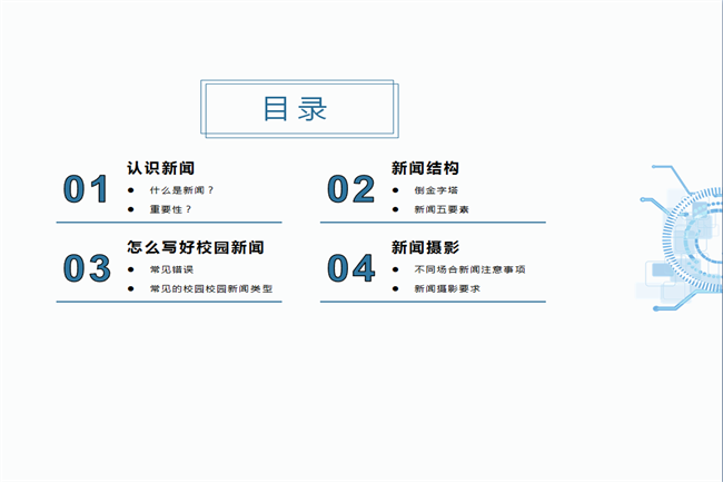 本次讲座从认识新闻、新闻结构、怎样写好校园新闻、新闻摄影四部分展开。金鑫老师向大家阐明了新闻的意义及其对现实社会的重要性。随后,金鑫老师提出,要严苛要求新闻稿的质量,在撰写新闻稿的同时要结合自身知识,提高新闻宣传的吸引力与感染力,并举例常见错误进行修改。同时,金鑫老师指出,新闻配图是新闻稿的重要组成部分,她对不同场合新闻照的构图、光感做了详细讲解,并提出了一些注意事项。
