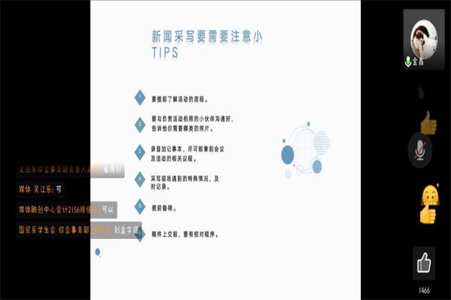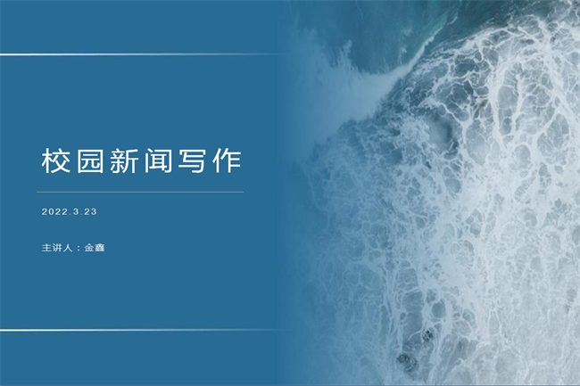 为加强学院各学生组织的新闻宣传能力,促进各学生组织宣传部门交流,3月23日,开云官网团委于线上举办“校园新闻写作”讲座。讲座诚邀学院综合办公室金鑫老师担任主讲人,对开云官网各学生组织宣传部门同学进行指导。