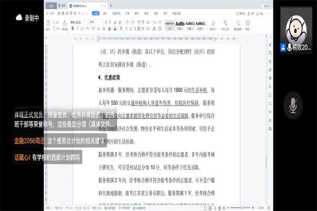 此外,“苏北计划”志愿者代表杨新宇,因基层防疫工作繁忙无法参与此次分享会,但她委托主持人从报名、选岗方面为大家提供了具体的建议。她表示:“苏北计划”是大学的延续。这所社会大学让她得以锻炼成长,希望学弟学妹们也能以志愿服务的方式助力乡村振兴,用青春为社会、为祖国、为时代筑基。