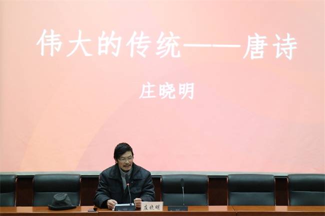 12月20日,知名作家庄晓明应邀做客开云官网“沐德大讲堂”,做题为《伟大的传统——唐诗》的讲座。讲座在桥头校区四教报告厅举行,师生近300人参加,学院团委书记千继贤主持。