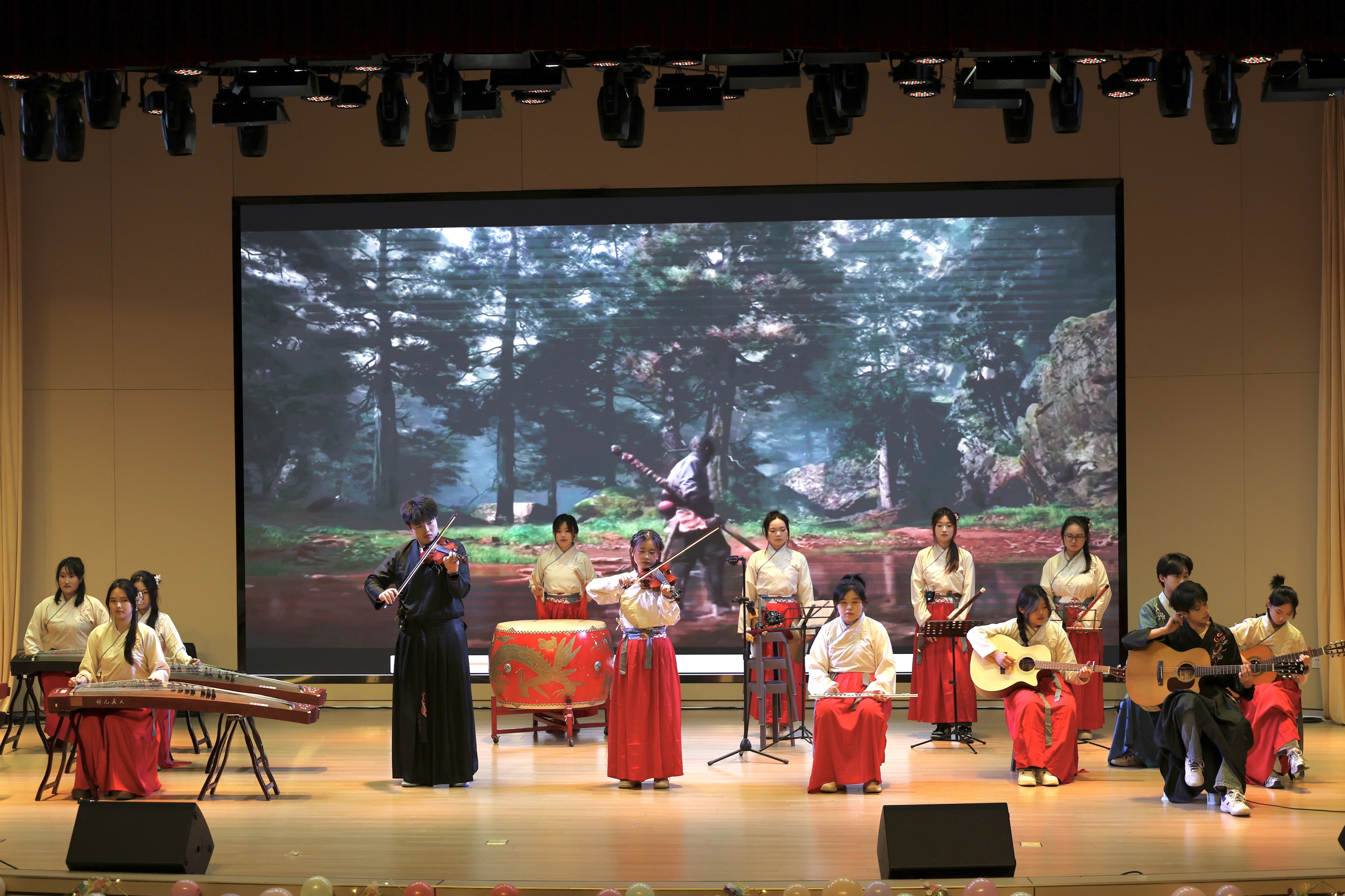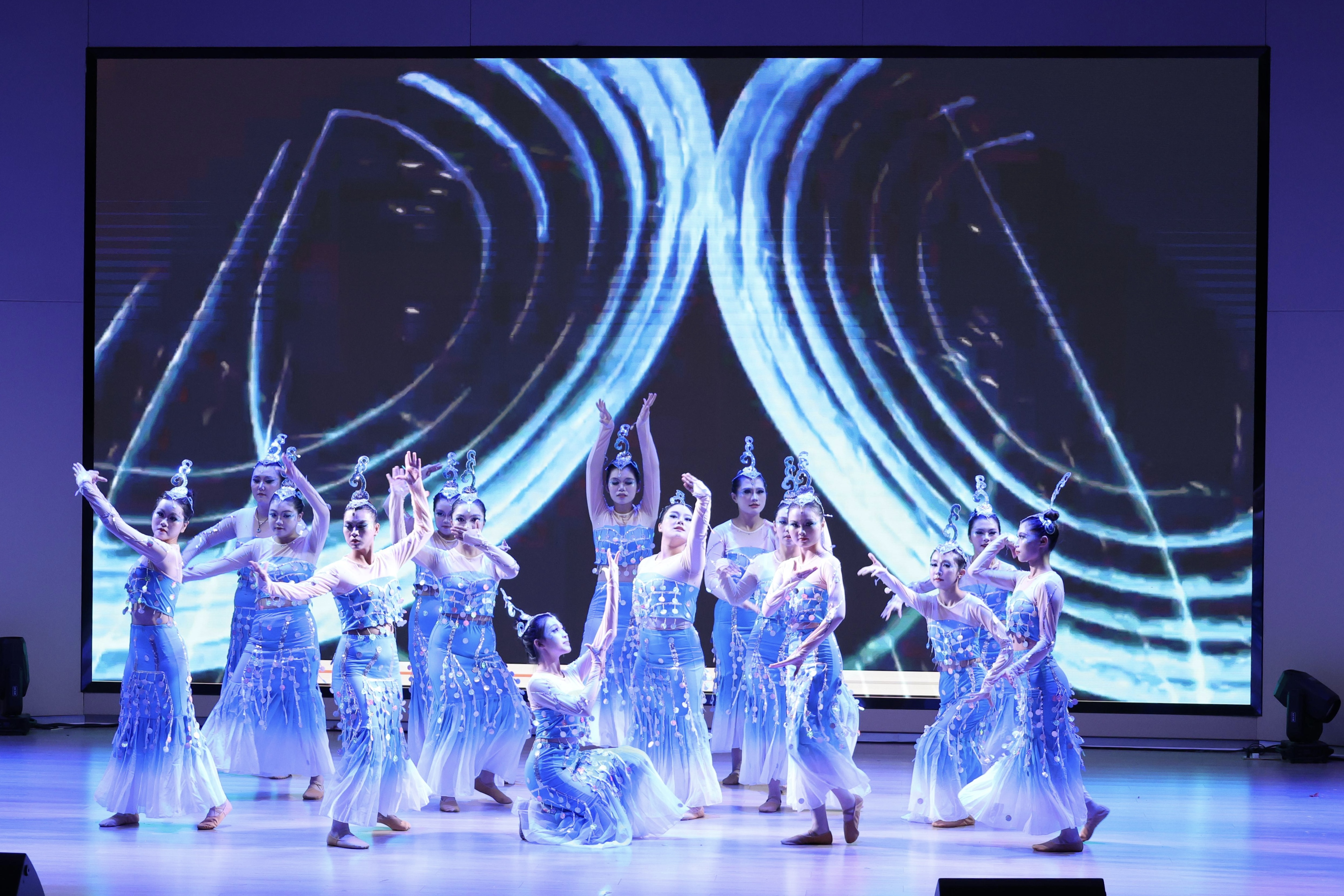 第一篇章“同舟共济”以多元变化的表演给观众带来丰富的观感体验。公关协会和篮球社带来情景走秀《归去来兮梦回千年》,展现出文化的厚重与魅力。欢乐逗笑社相声《羊上树》通过传统表演形式揭示深刻哲理,语言幽默,生动风趣。大学生职业发展协会的舞蹈《水之灵》,舞出百态之韵,凝结自然之美。乐艺团带来乐曲合奏《云宫迅音》,用乐器合奏的形式,引领观众重温西游经典。