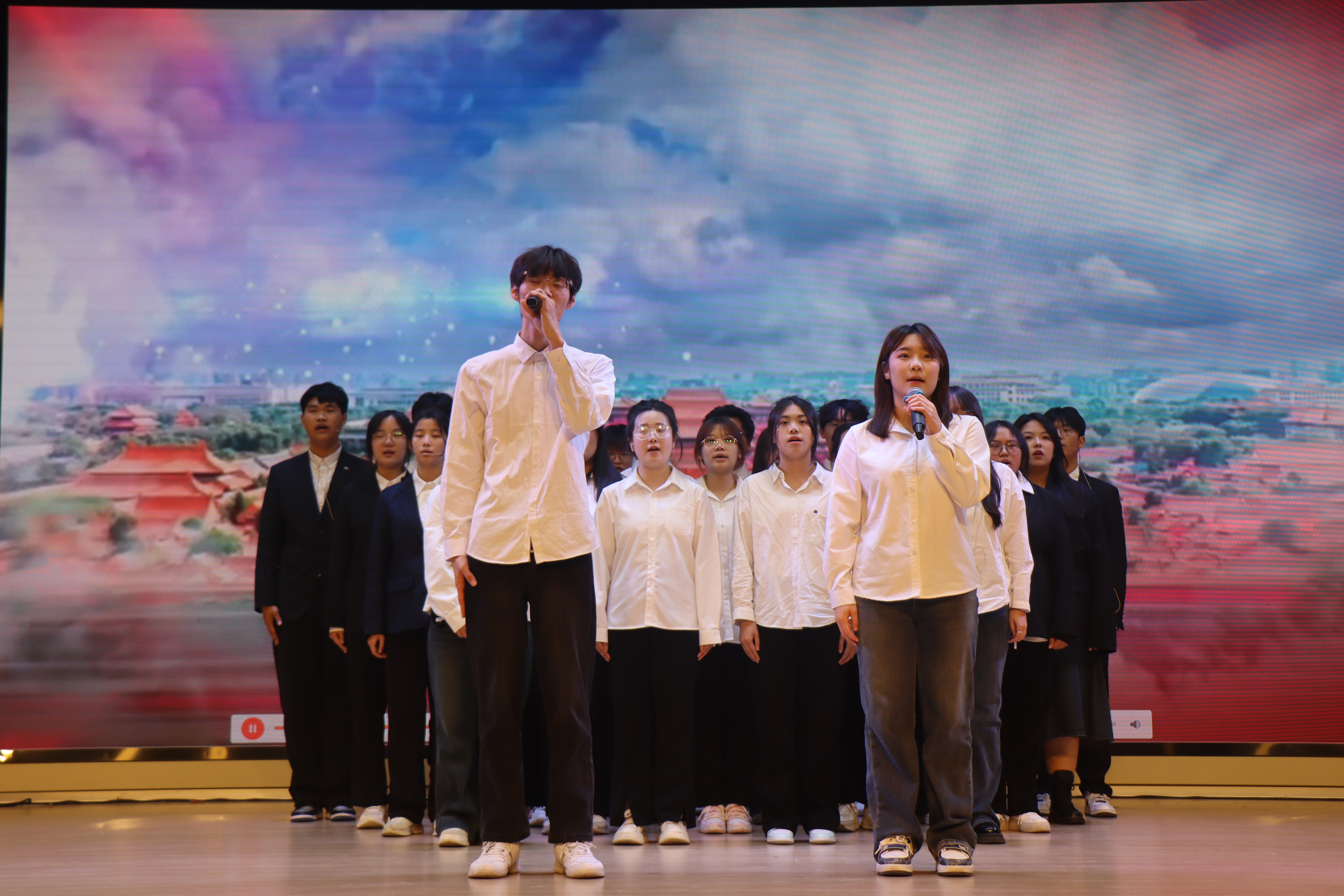 法学2451团支部合唱《灯火里的中国》悠扬延绵的歌声,蕴含百年中国变迁与发展。营销2451带来情景剧《五四青年》,以青年之声弘扬五四精神。商务2452团支部朗诵《新征程》,将源源不断的力量注入观众心中。税收2453团支部带来情景剧《纪念刘和珍君》让观众再次看到了人们为了国家主权、民族尊严振臂高呼的勇敢与担当。财管2453团支部带来的合唱《如愿》,以朗诵加合唱的形式,鼓励青年坚定前行,无惧风浪。